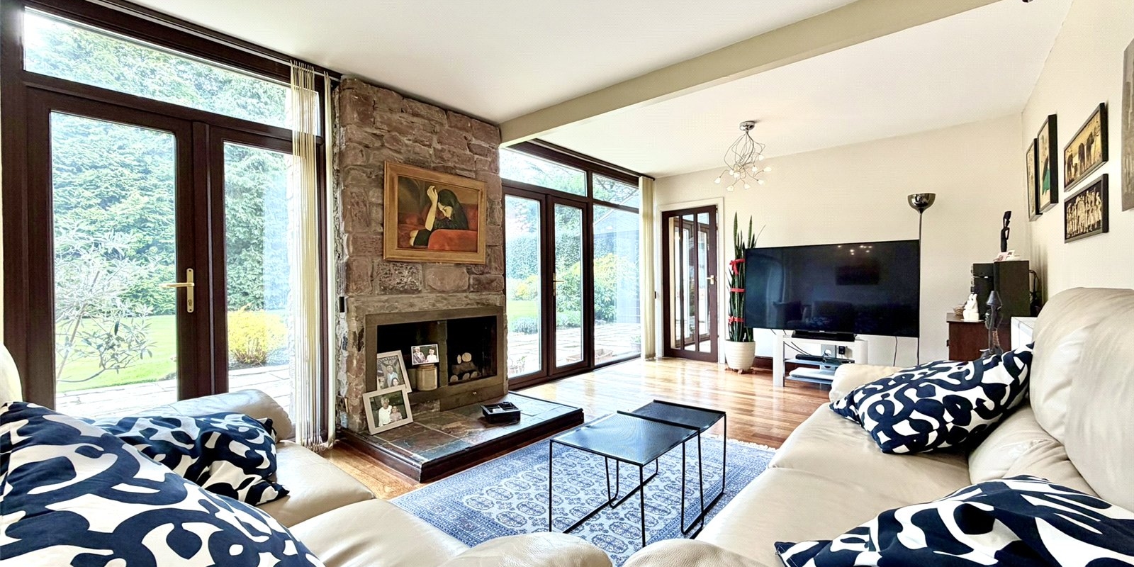 Further benefits include a range of environmentally conscious features such as an air source heat pump, solar panel array, and extensive double glazing, ensuring both energy efficiency and modern sustainability throughout.