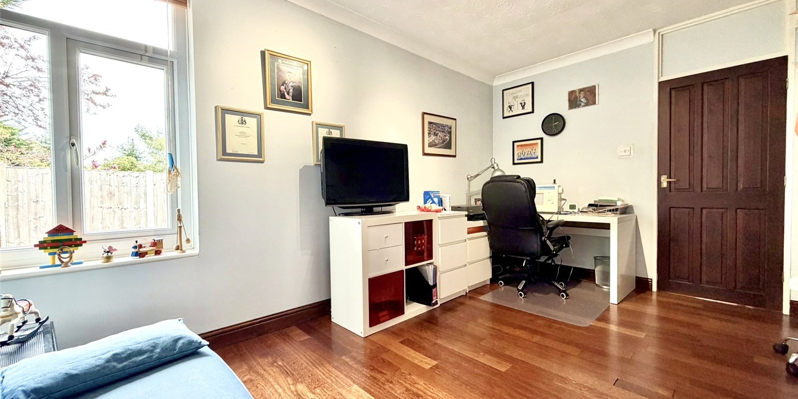 At the heart of the home is a stunning 27' 9" lounge, flooded with natural light from floor-to-ceiling windows and centered around an elegant stone feature fireplace, creating a perfect space for both relaxation and entertaining. The contemporary high-gloss kitchen is equally impressive, featuring a breakfast area with direct access to the rear garden, seamlessly blending indoor and outdoor living.