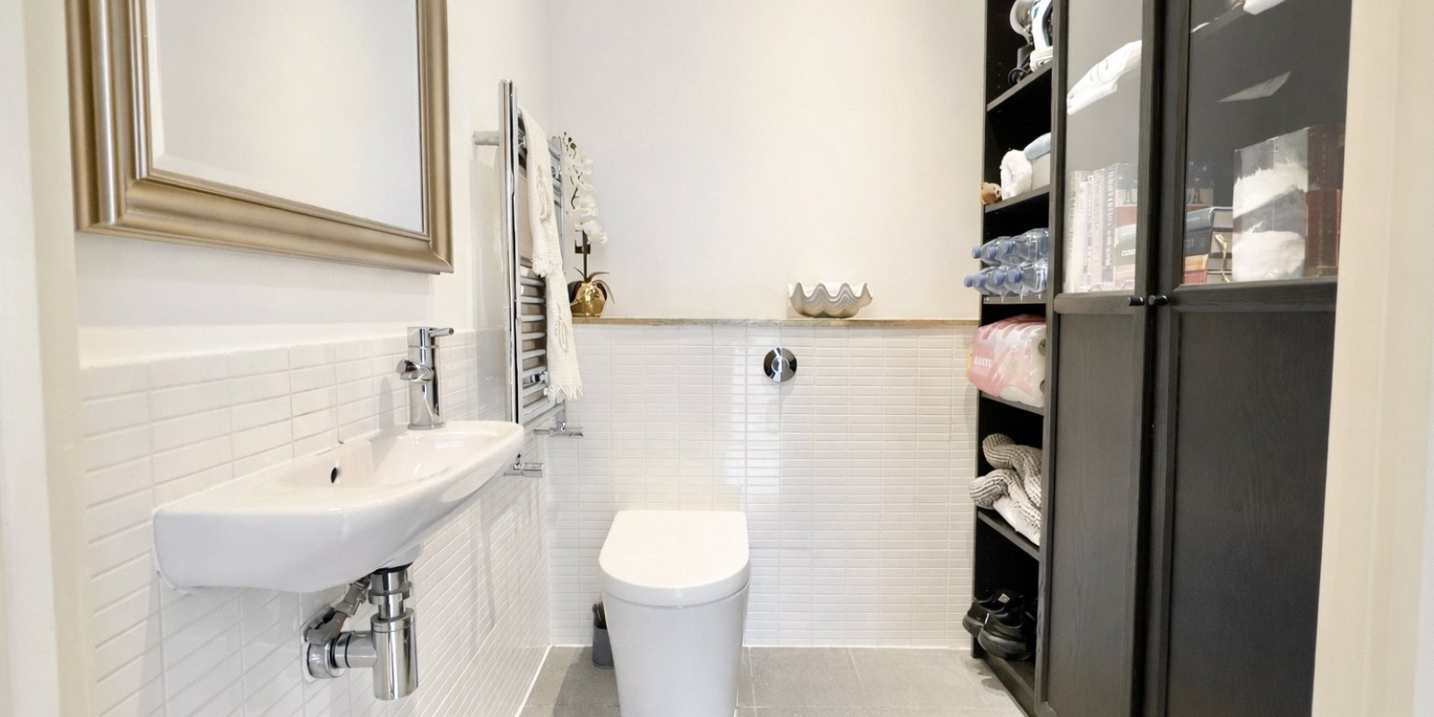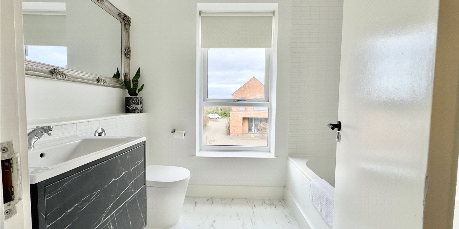 To the first floor, the property offers two generously proportioned double bedrooms along with a versatile third single bedroom, currently utilised as a walk-in wardrobe. These rooms are served by a sleek and modern family bathroom, finished to a high standard in keeping with the contemporary design of the home.