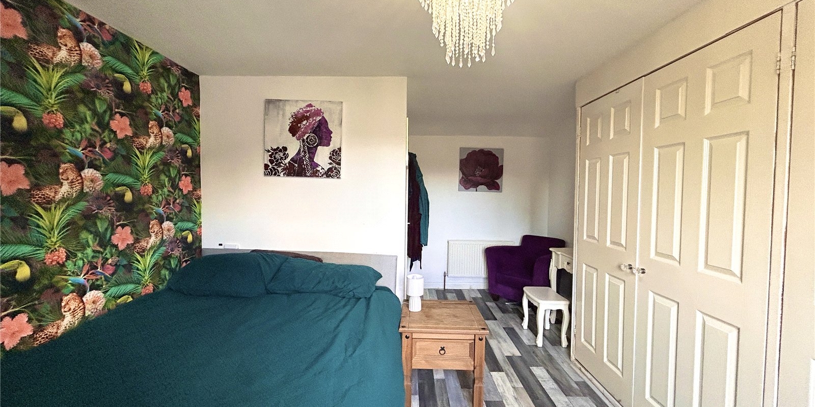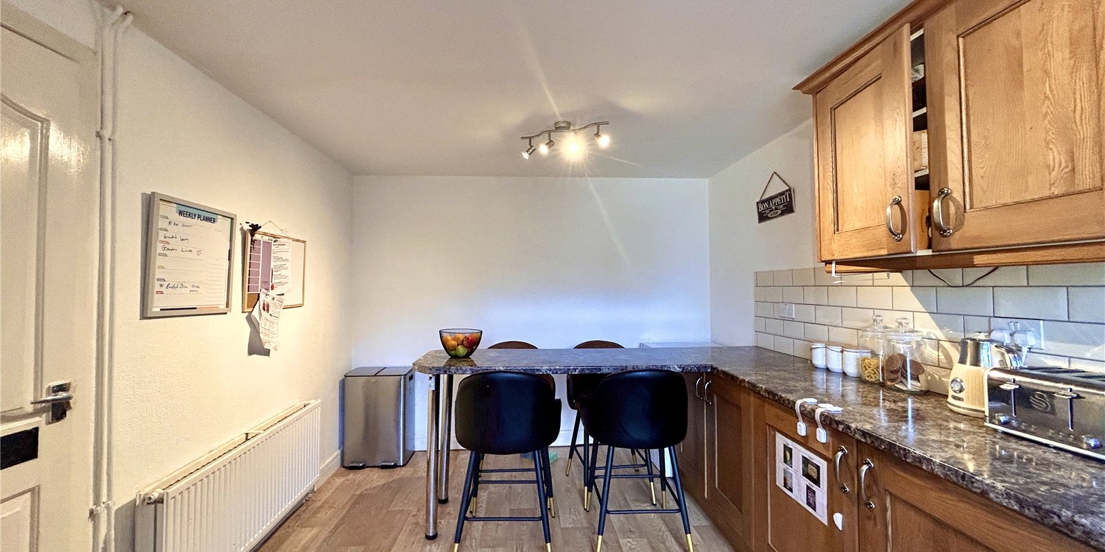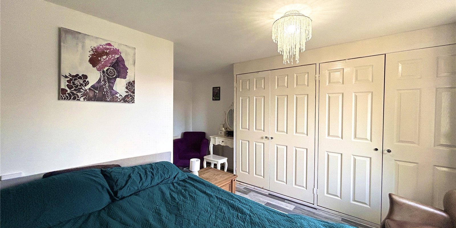 To the first floor, you’ll find two well-proportioned double bedrooms, with the master benefiting from built-in storage, along with a modern white three-piece bathroom.