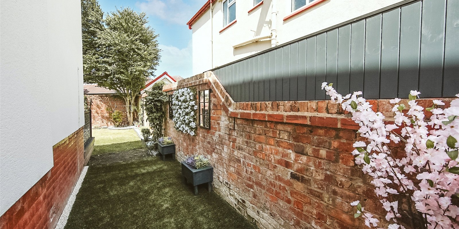 The rear garden is bathed in sunlight throughout the day.