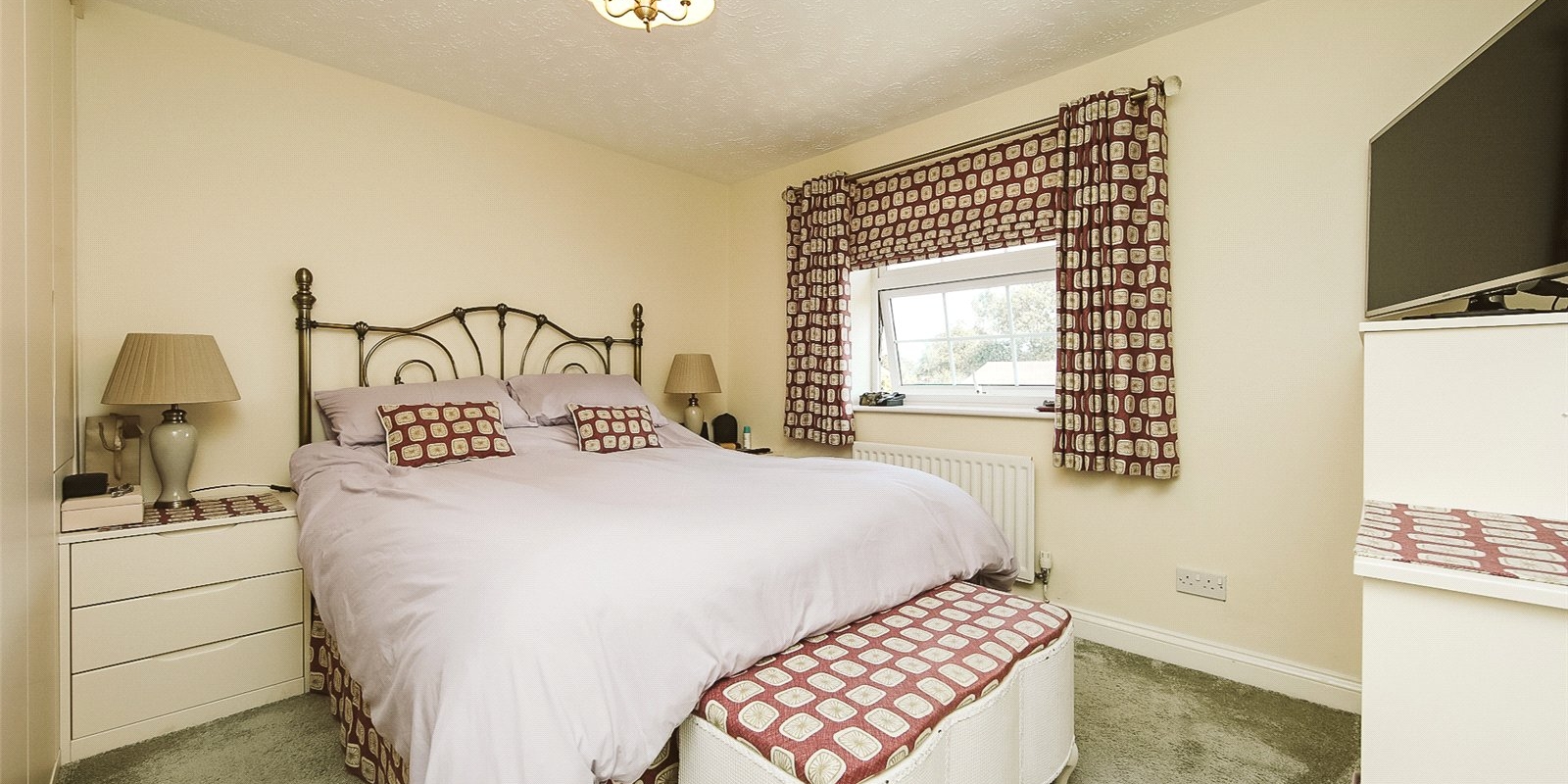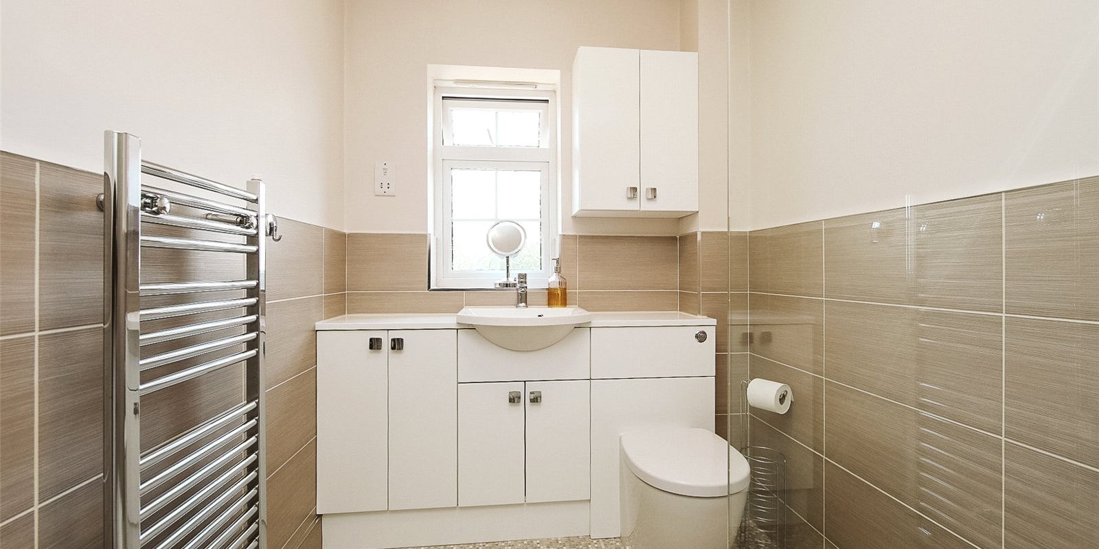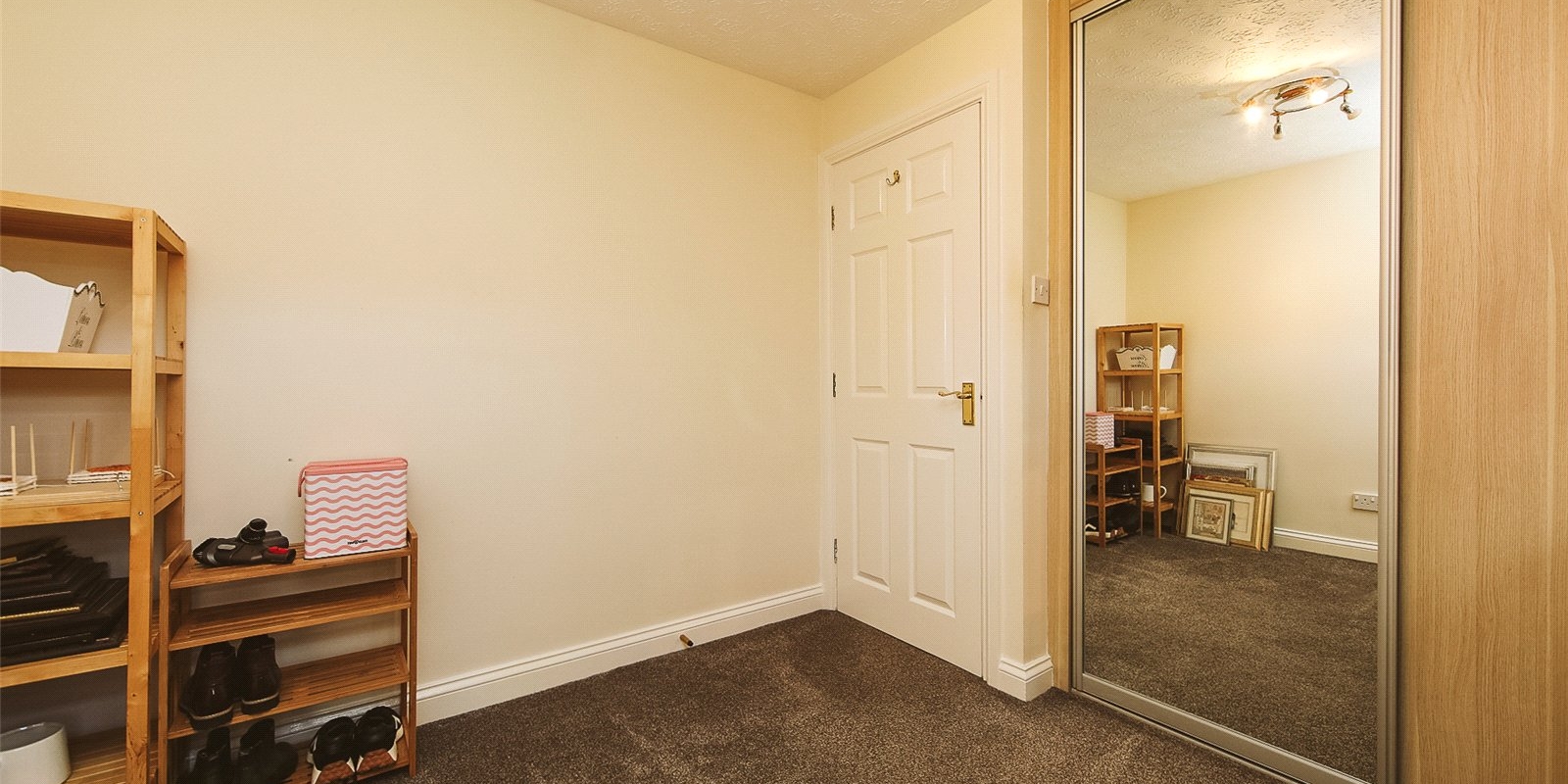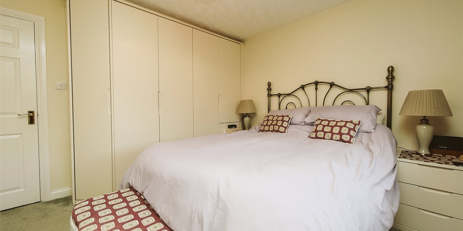 The second floor offers two double bedrooms, including a spacious master bedroom with a private en-suite shower room. A hallway and storage cupboard complete the top floor layout.
