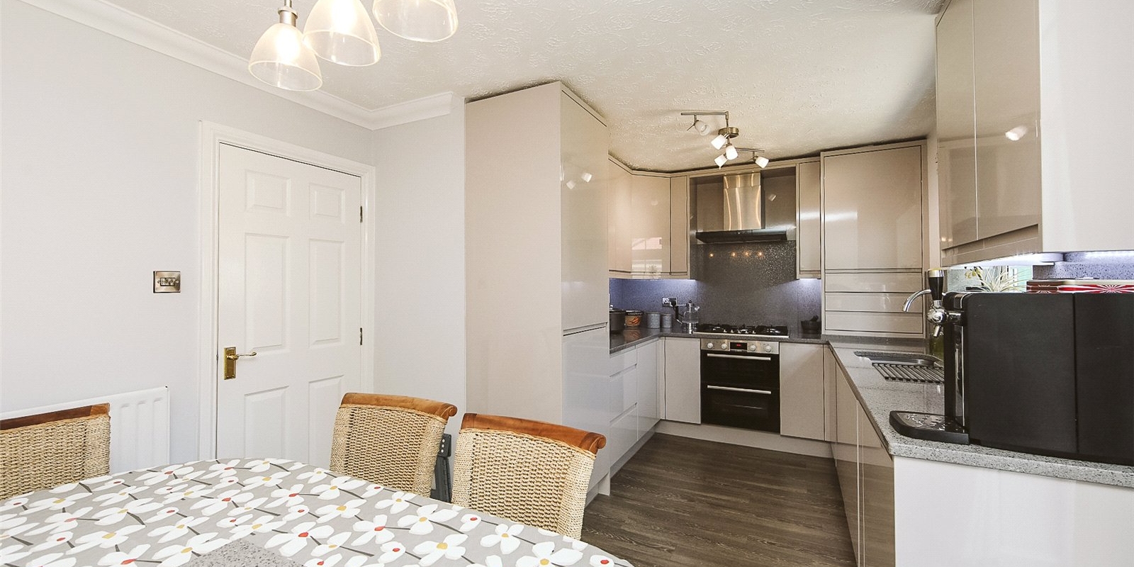 The accommodation is arranged over three floors. On the ground floor, there is a welcoming entrance hallway with cloakroom/WC, a third bedroom which could also be used as a home office or study, and a recently updated fitted dining kitchen with patio doors opening out to the enclosed rear garden—perfect for everyday living and entertaining.