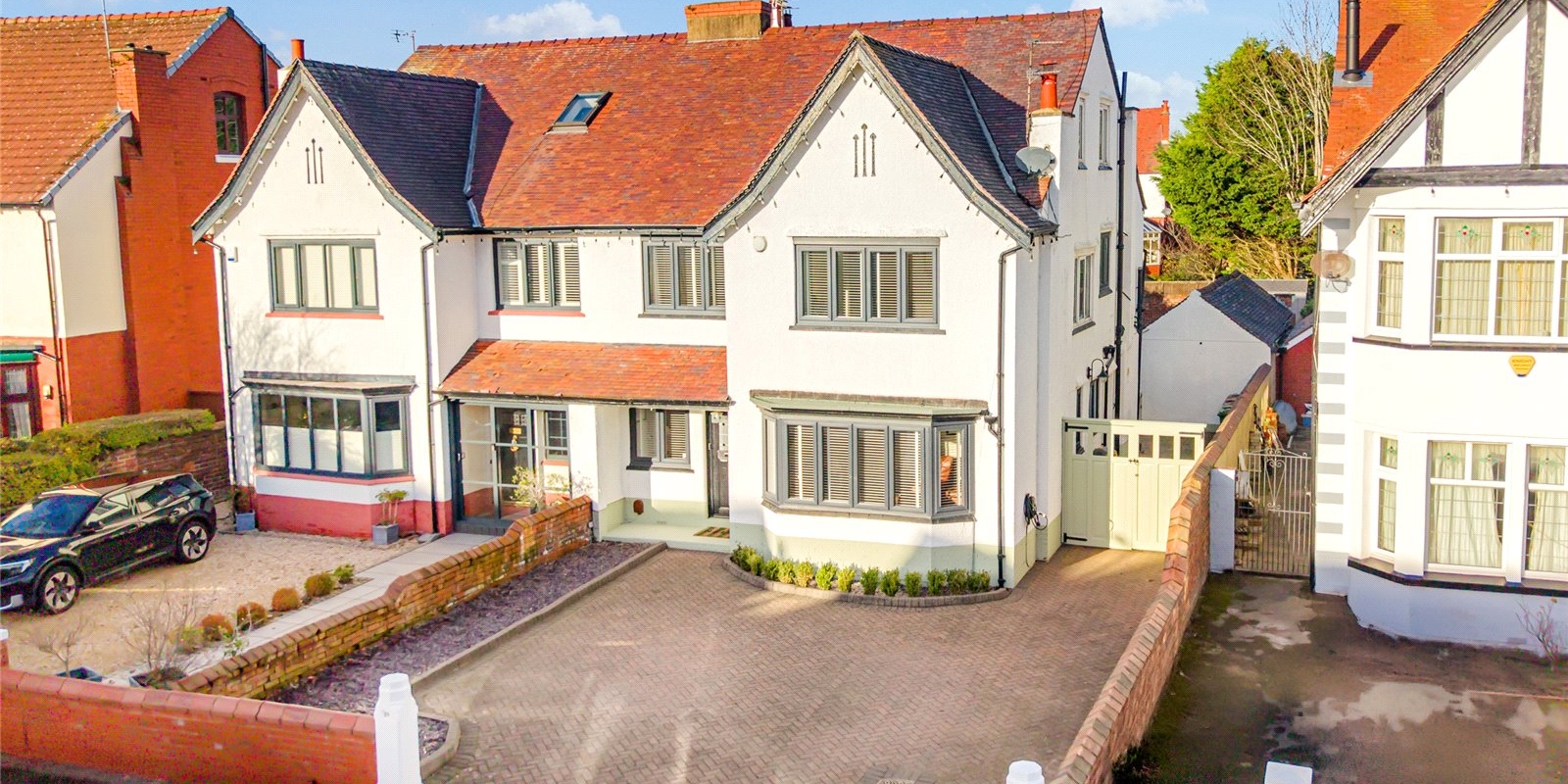 At the front of the property you are greeted with a large driveway, capable of parking multiple cars comfortably. This home also offers an easily accessible 7w EV charger at the front of the house.