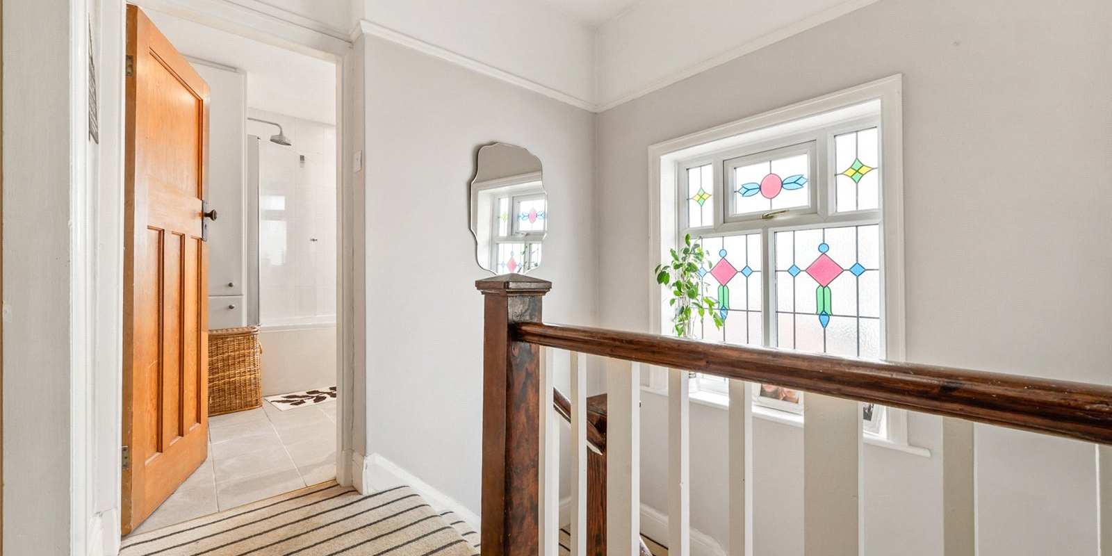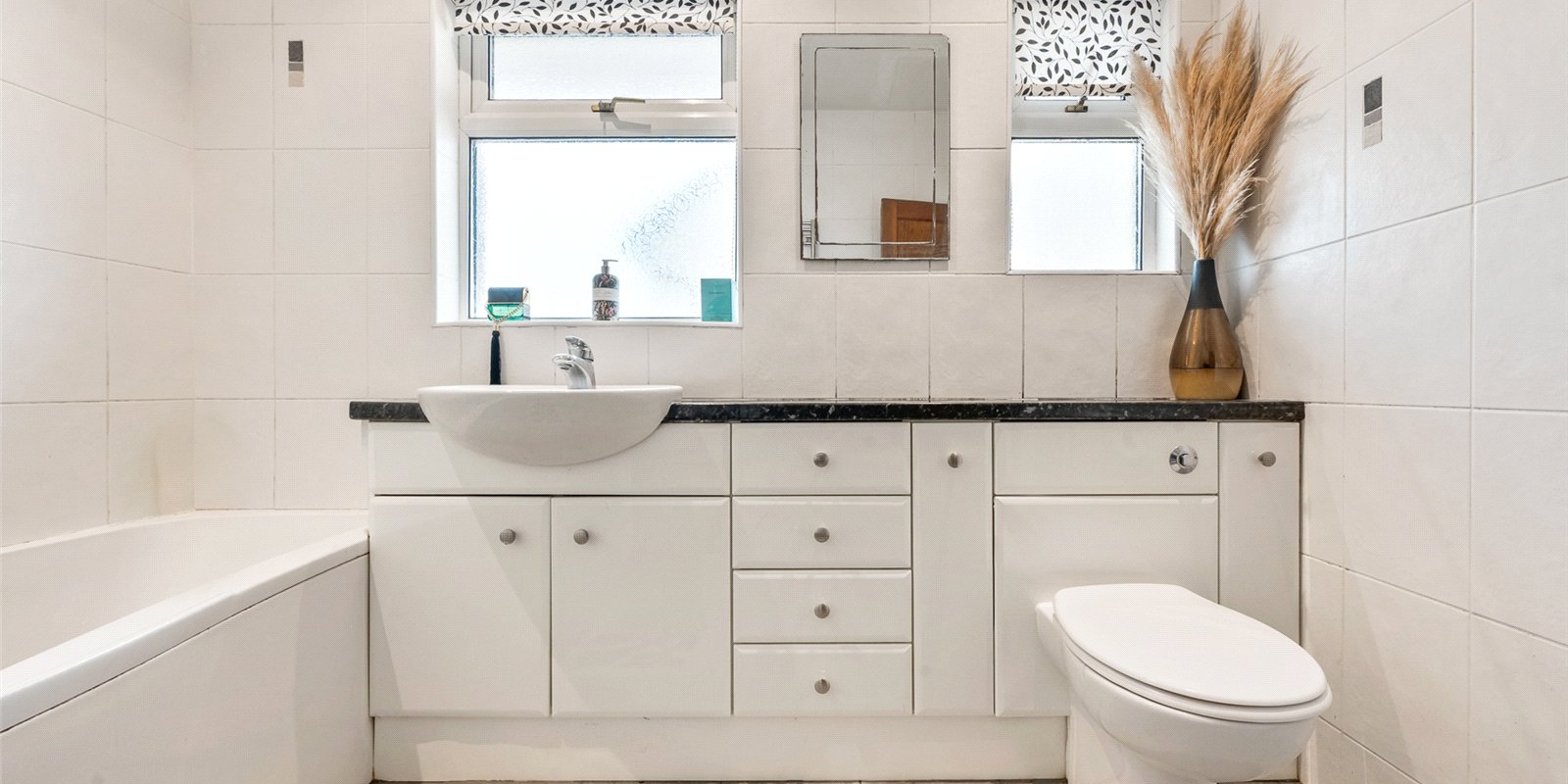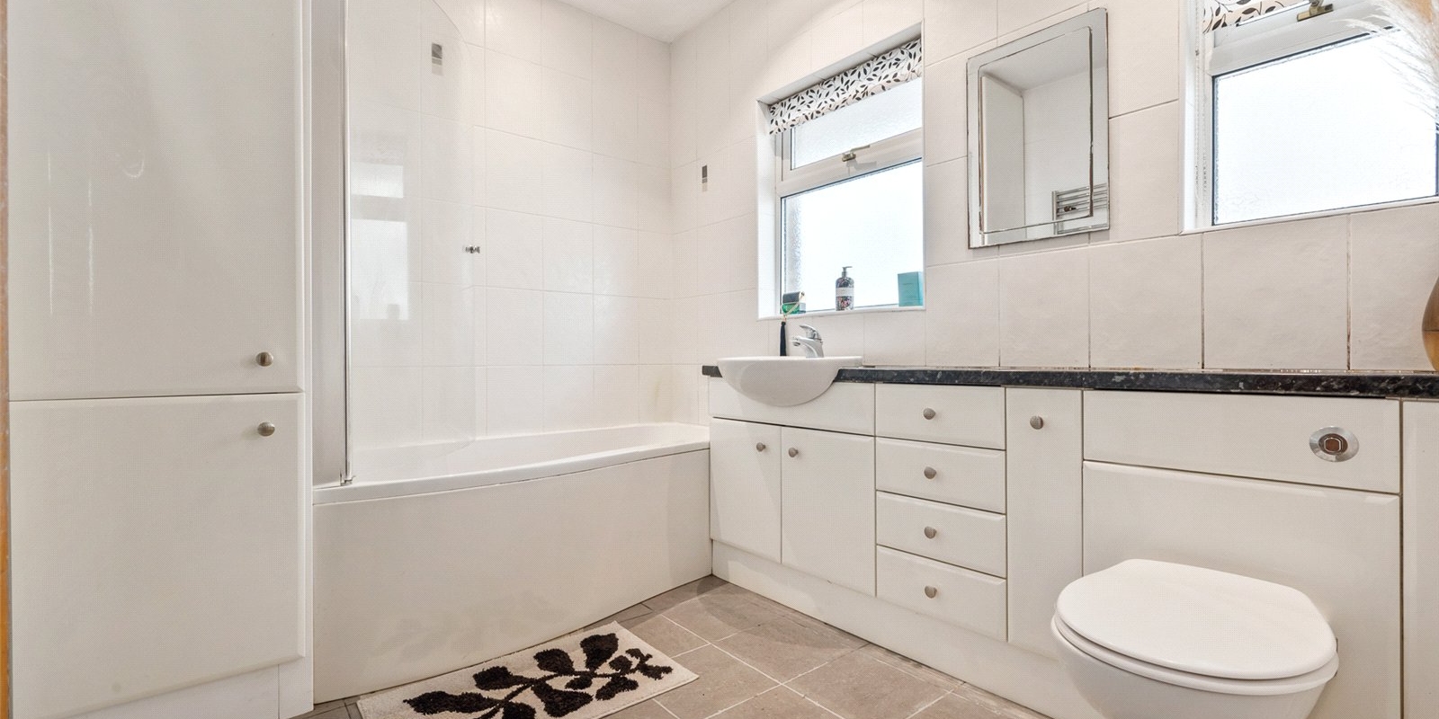 Upstairs, the property offers three bedrooms, two natural light double rooms and one slightly smaller bedroom, all with fitted wardrobes. making it ideal for families, guests, or home working. The accommodation is completed by a family bathroom fitted with modern fixtures.