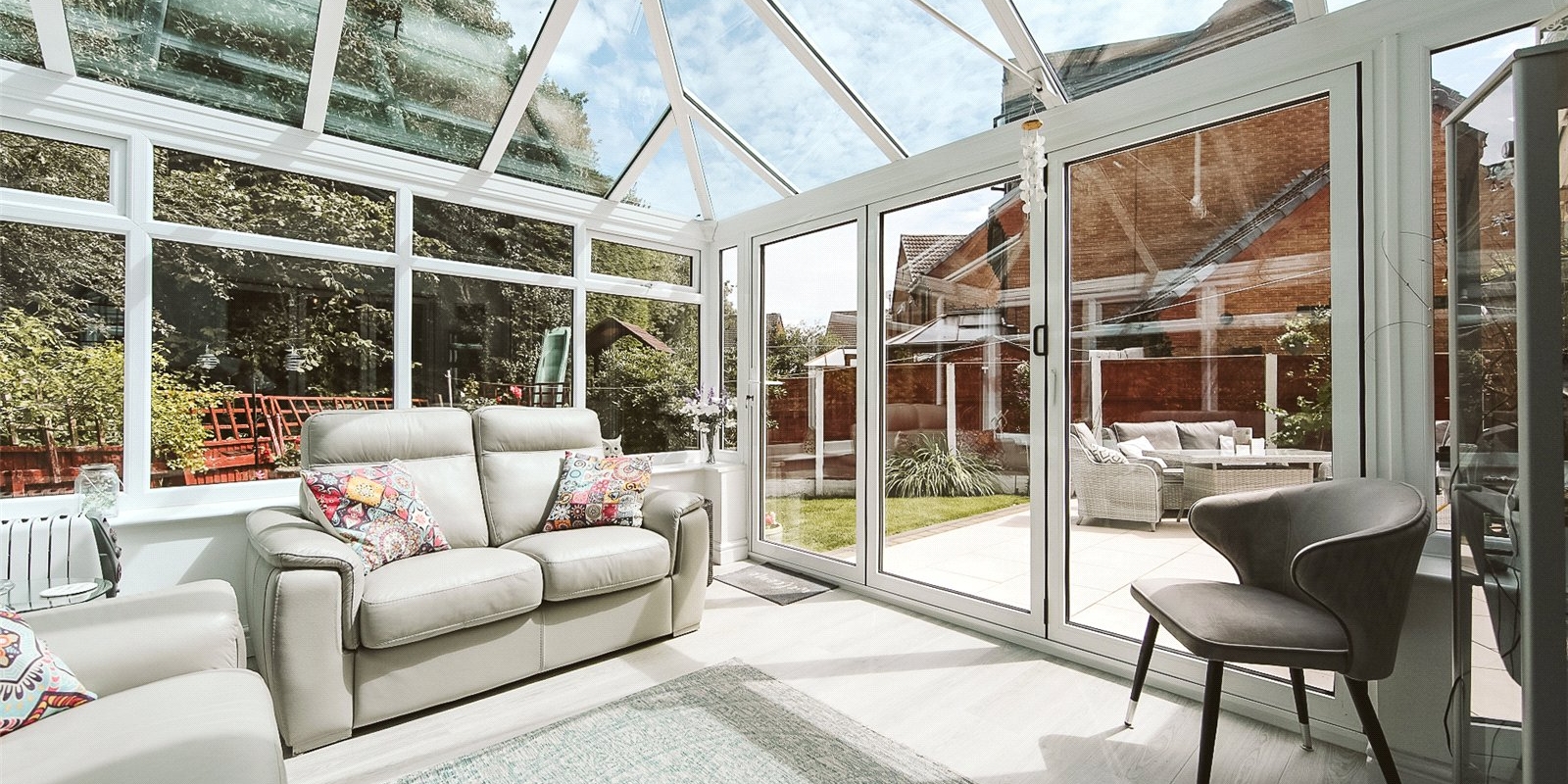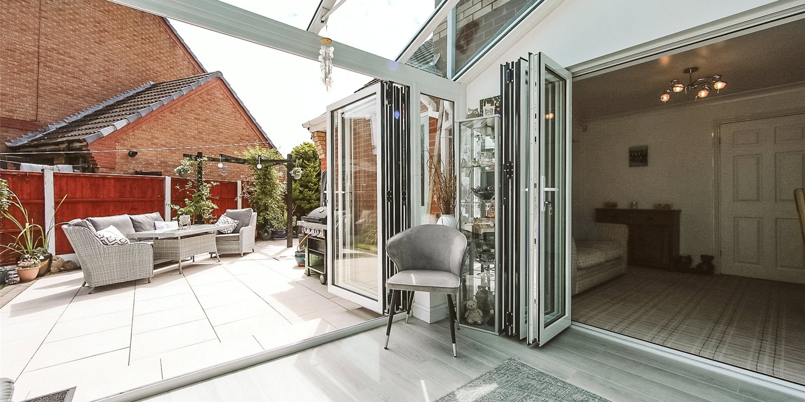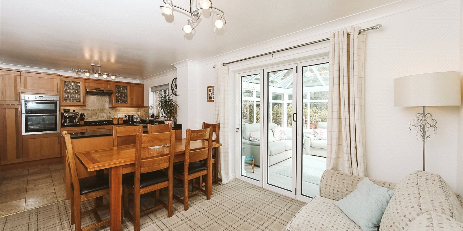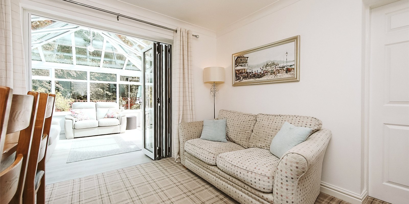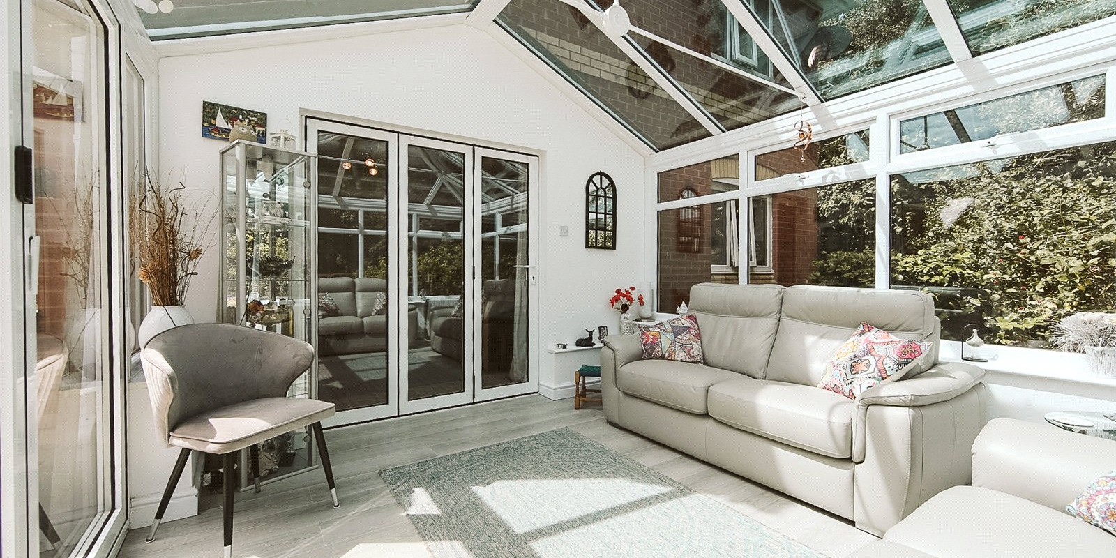 Generous living spaces and a sun room with bi-fold doors leading to a private garden