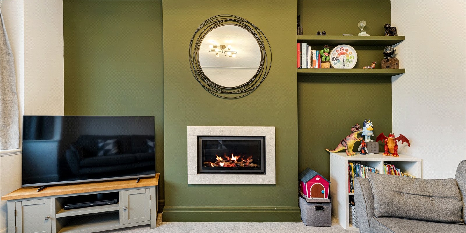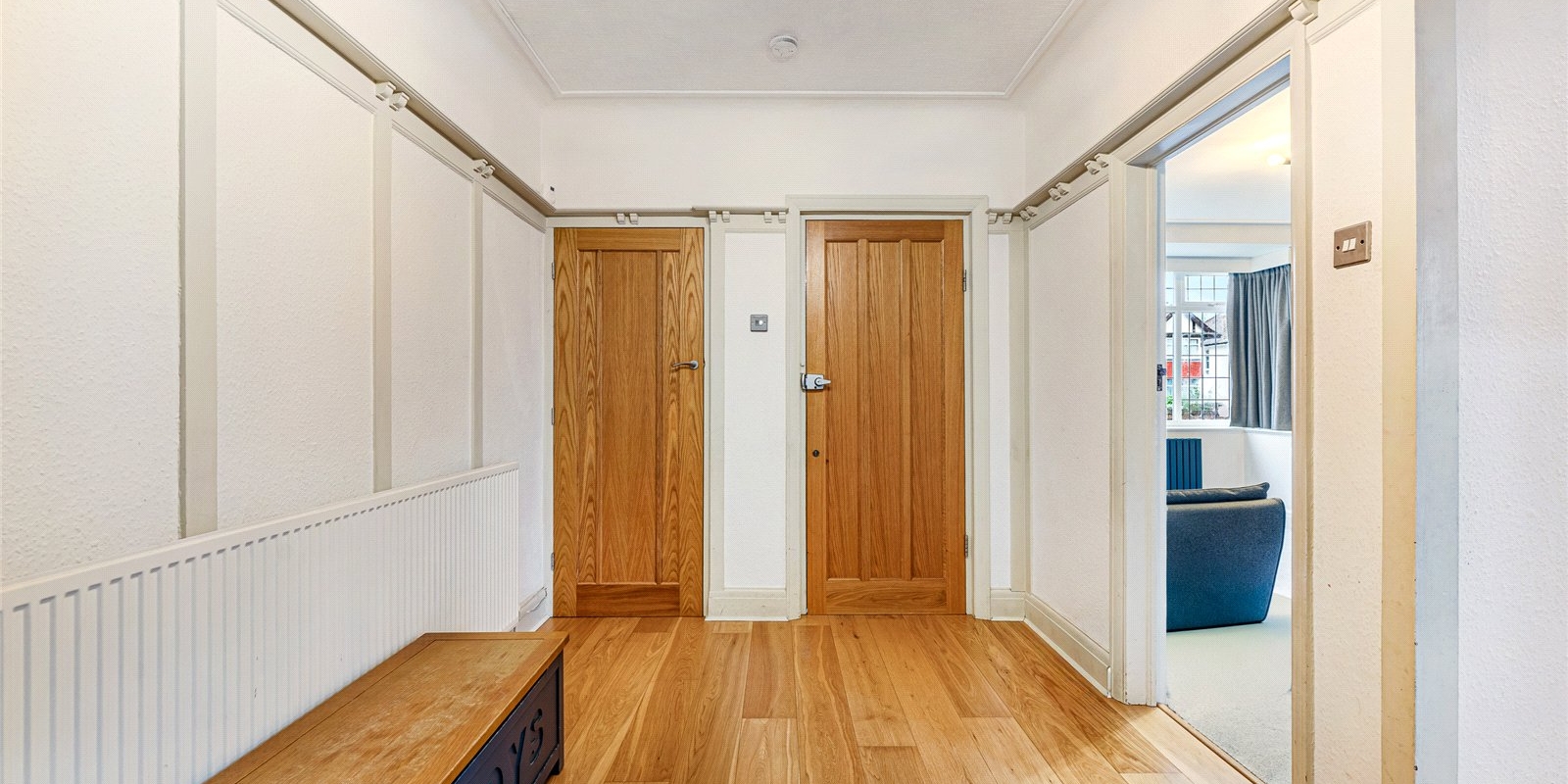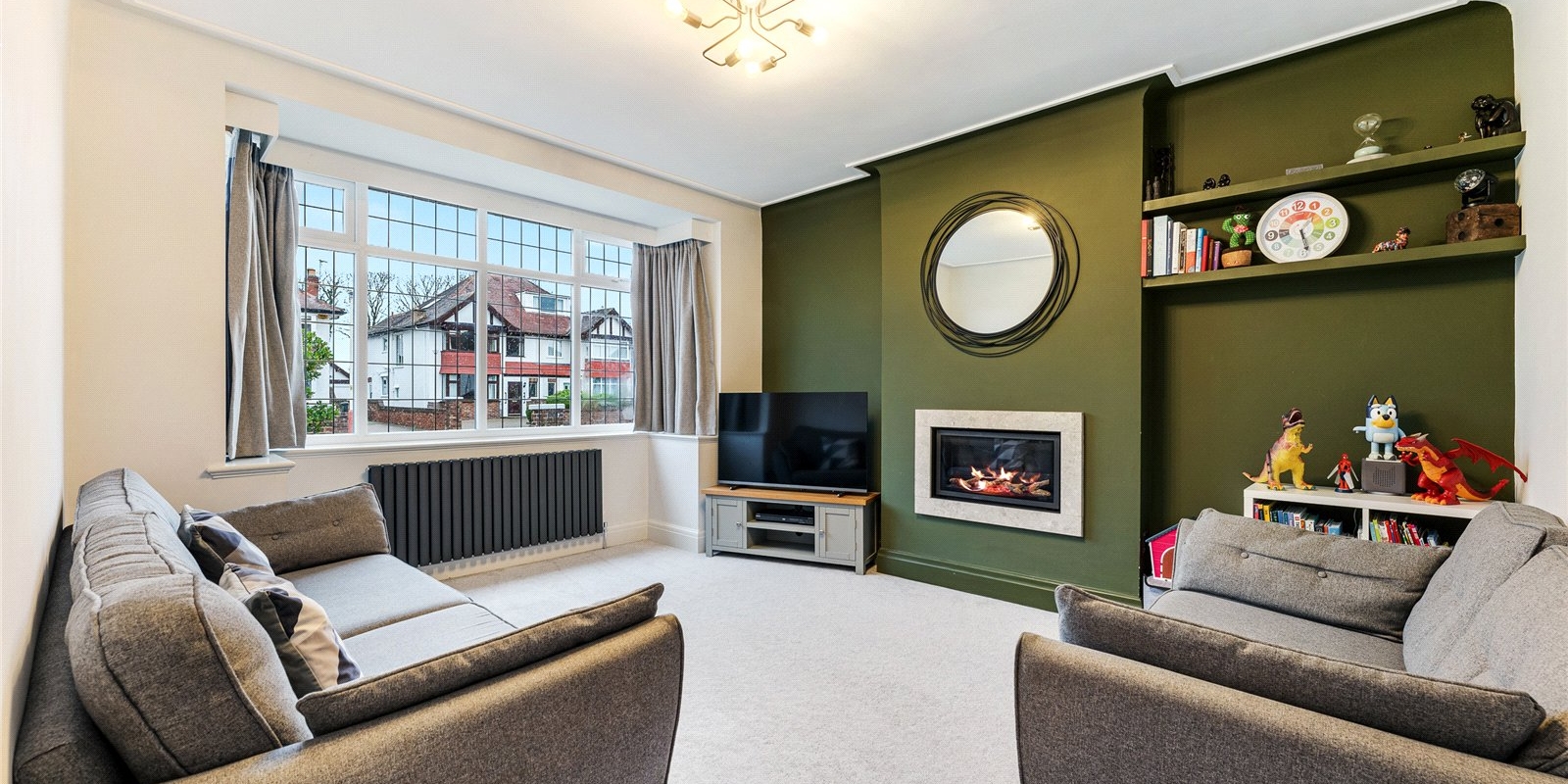 The property welcomes you with a large, characterful entrance hallway, instantly setting the tone with its sense of space and light. To the front is a beautiful reception room, featuring a gas fireplace and large windows that flood the room with natural light, a perfect space for relaxing or entertaining.