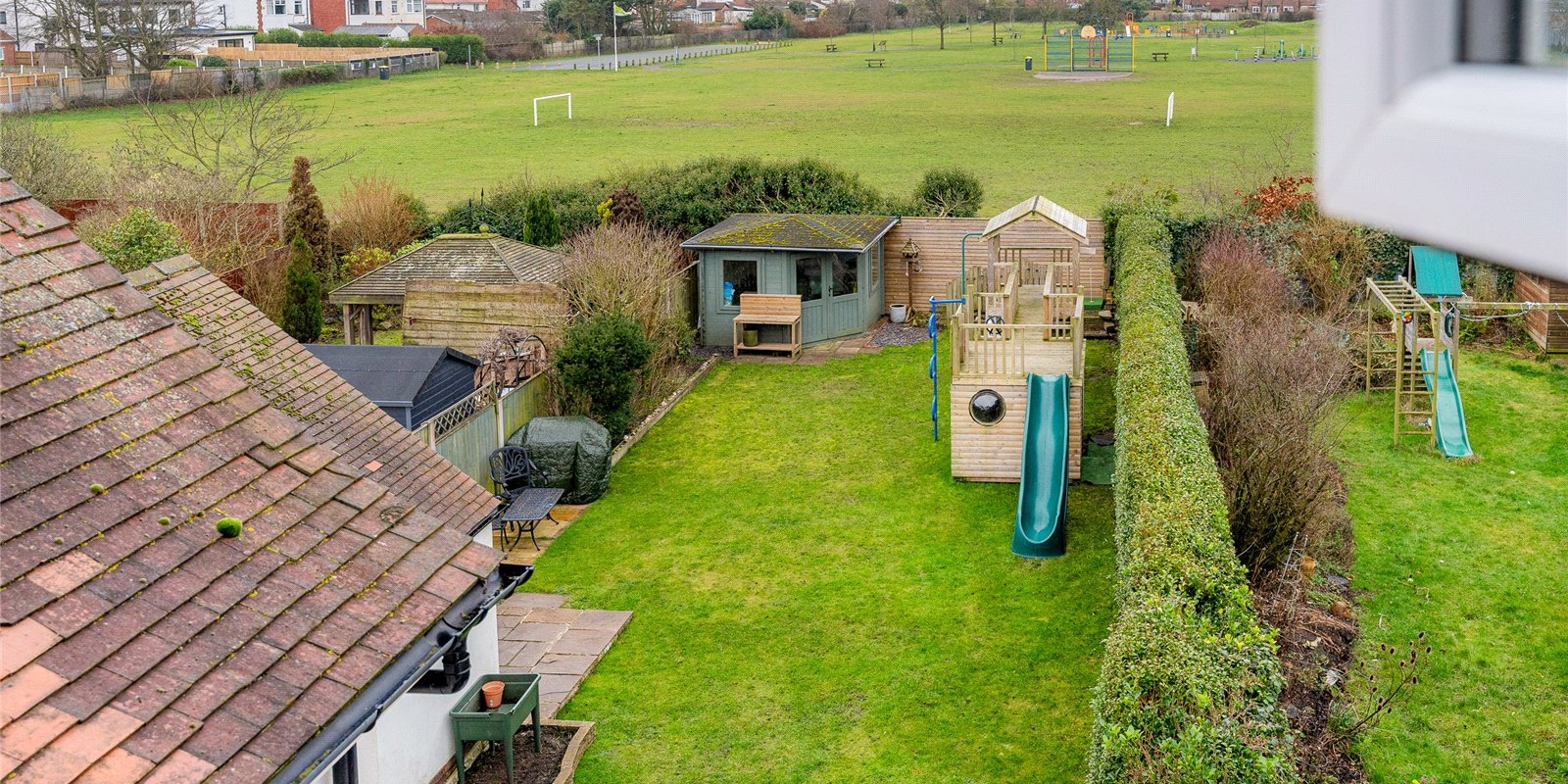 To the rear, the private South - Facing garden is not overlooked and enjoys a peaceful outlook, backing directly onto a park, creating a wonderful sense of greenery and tranquillity.