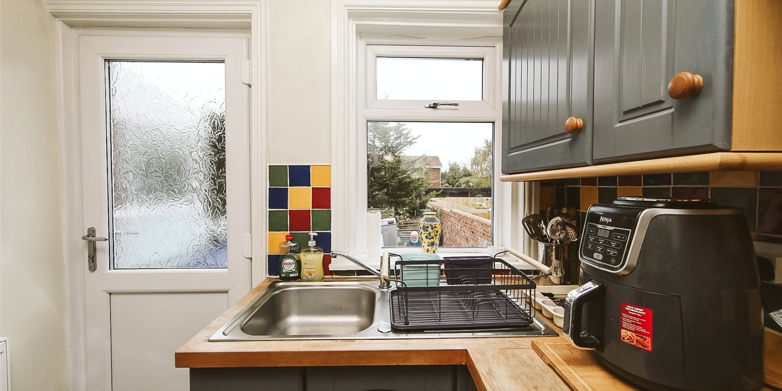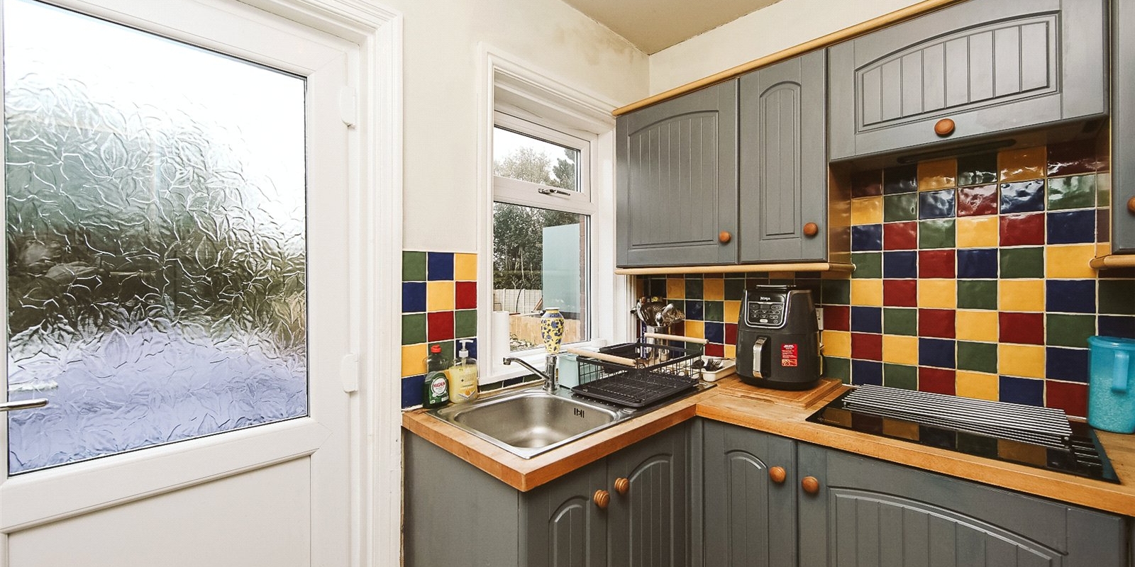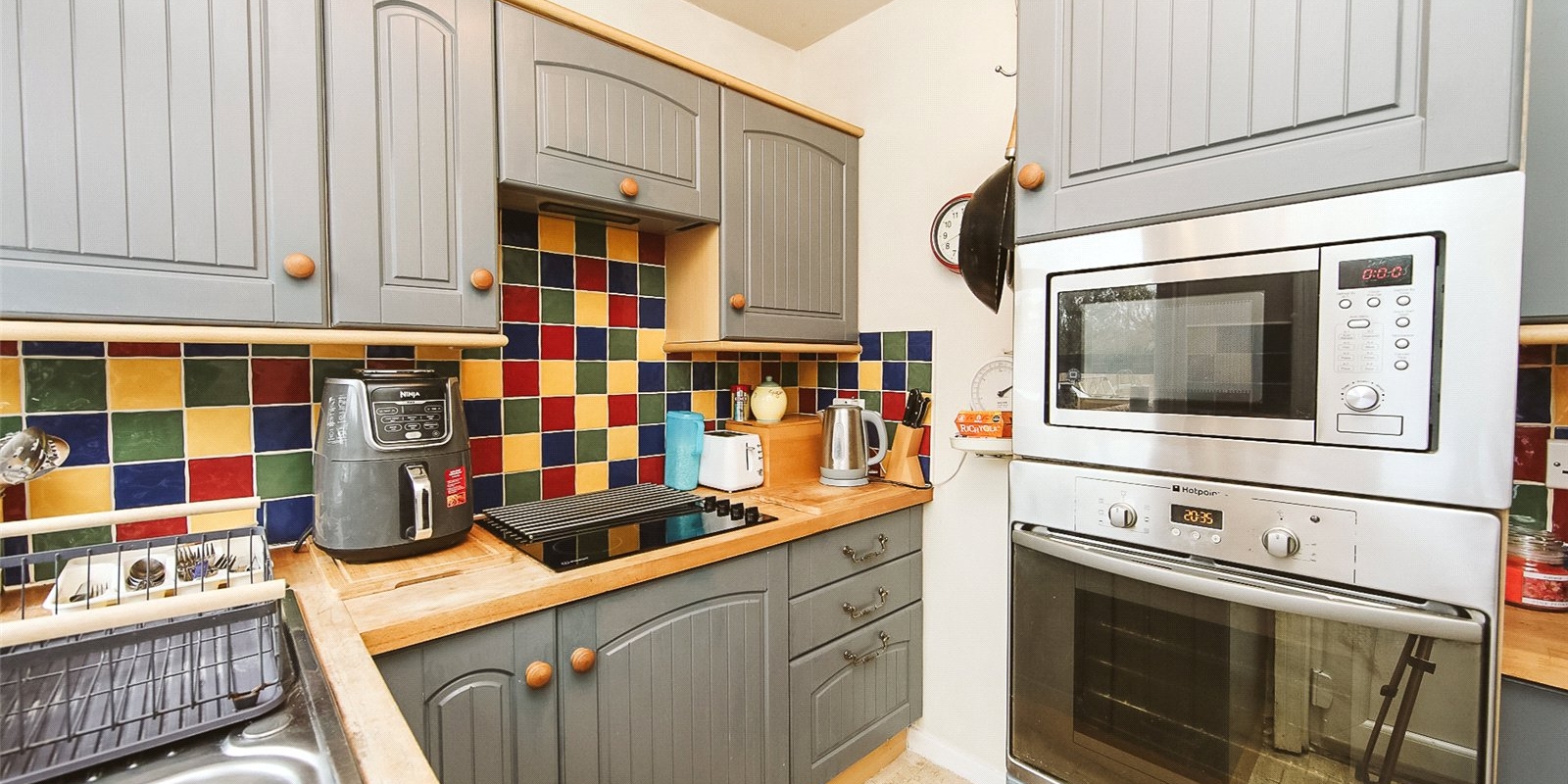 The kitchen offers a functional layout with good storage and worktop space, ideal for daily cooking and meal preparation.