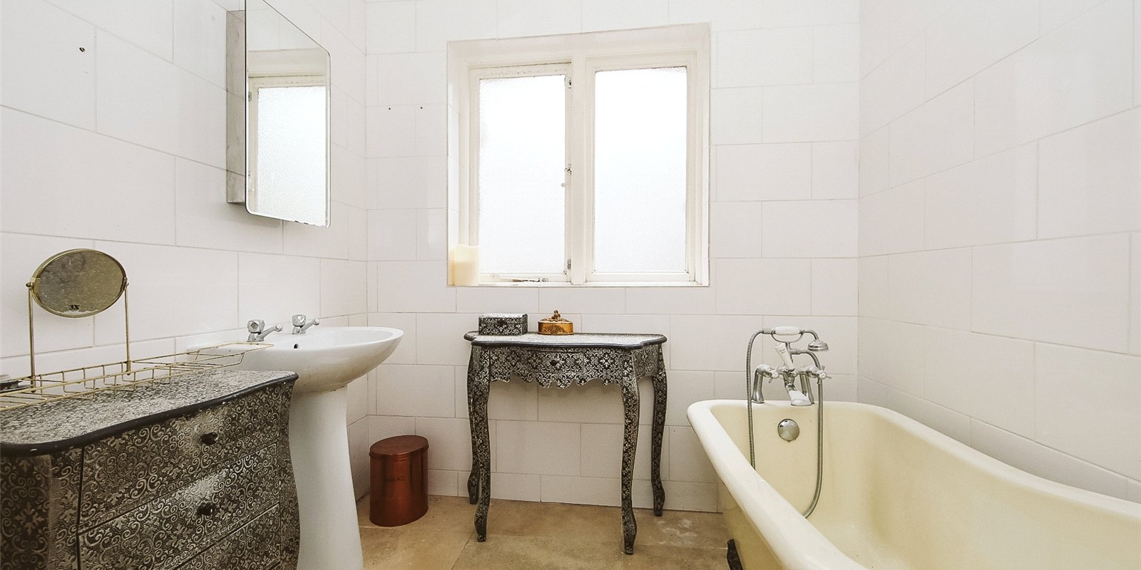 A stylish bathroom with a freestanding bath