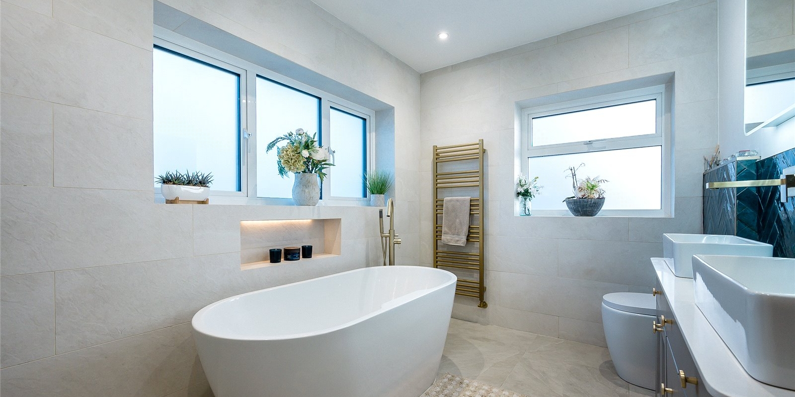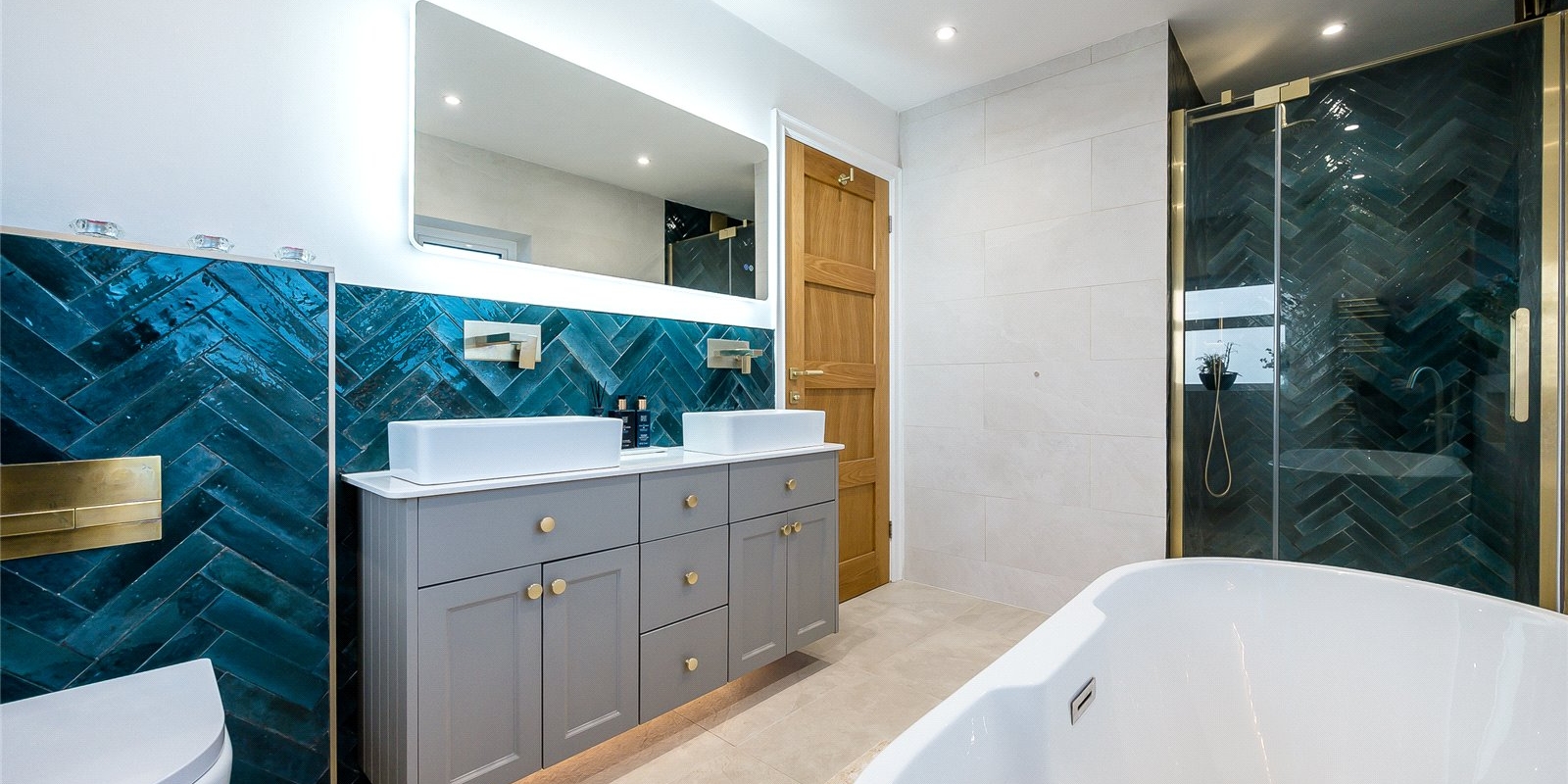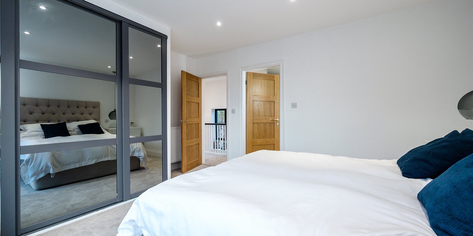 Upstairs, you'll find four generously sized double bedrooms, each boasting its own en-suite bathroom offering comfort and privacy for all. The luxurious primary suite further benefits from a walk-in wardrobe, adding a touch of indulgence.