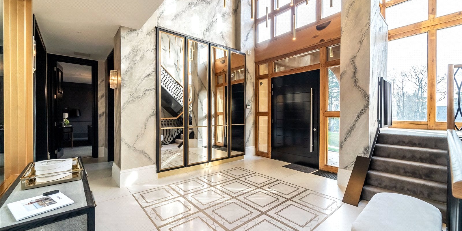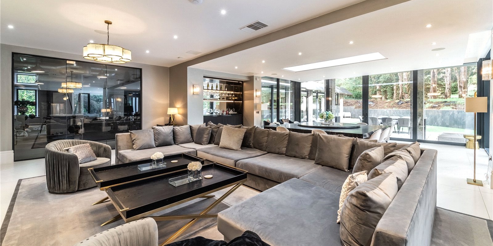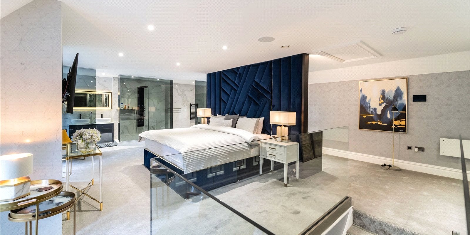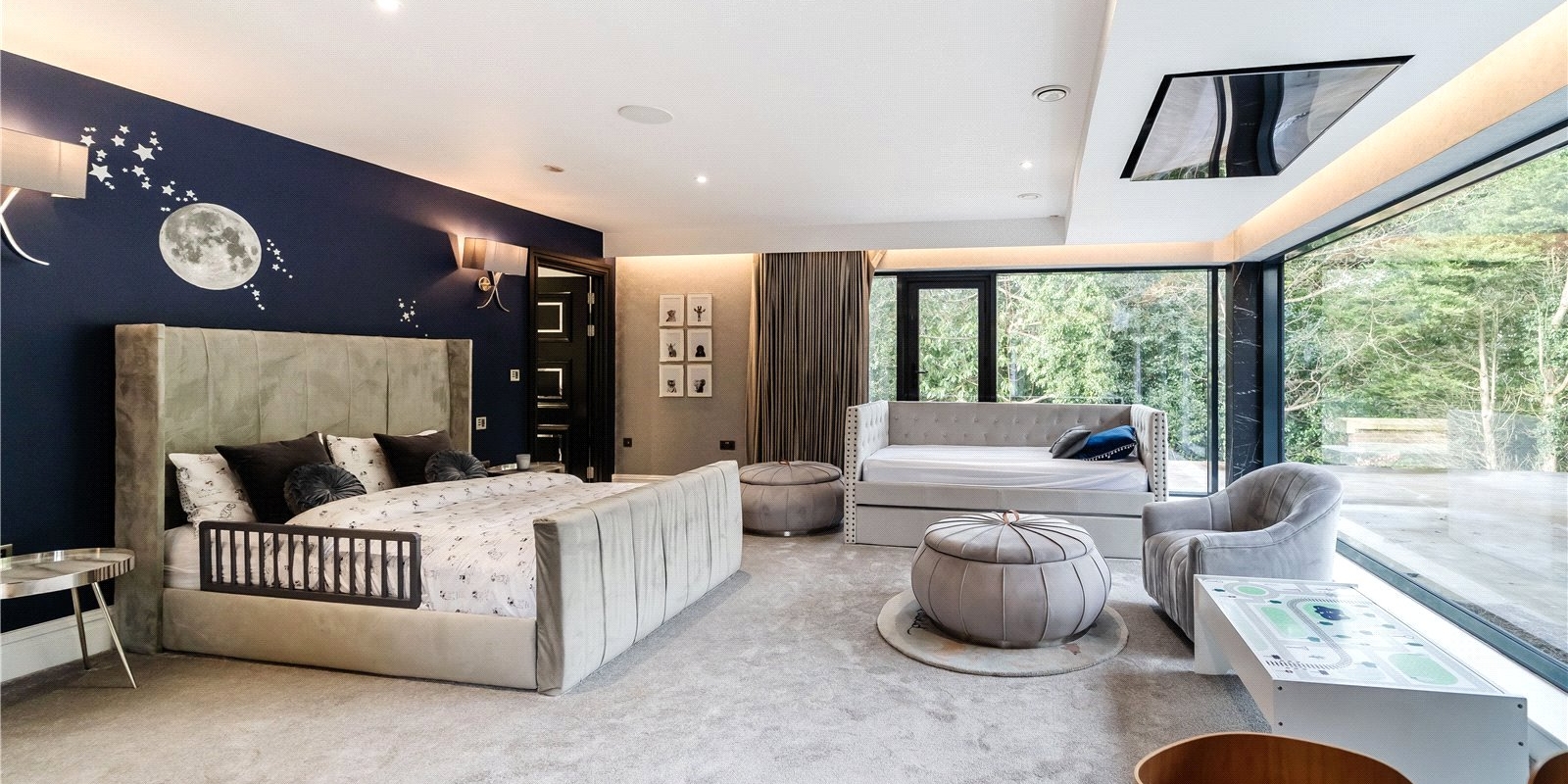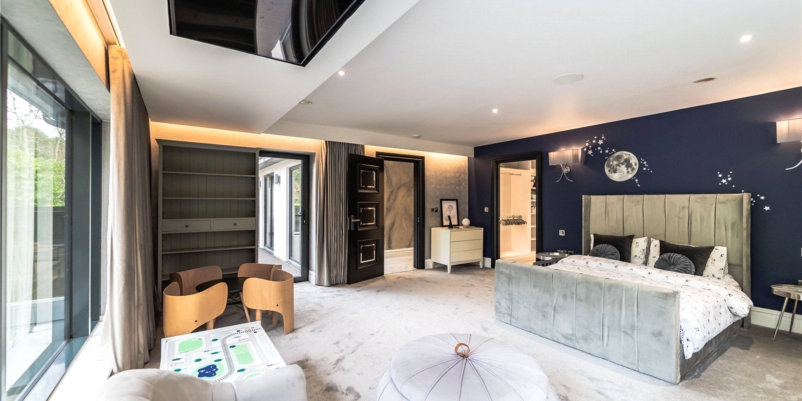 Internally, one is drawn to the bold material palette and inspried entrance. In summary, the ground floor features a grand entrance hallway, formal lounge, study, playroom, utility room, and W.C. The breathtaking and luxurious open-plan family living kitchen diner boasts a wealth of superior fixtures and fittings. Additionally, the ground floor provides access to a stunning leisure suite, including a spacious gym, swimming pool with bar area, sauna, steam room, and shower room.