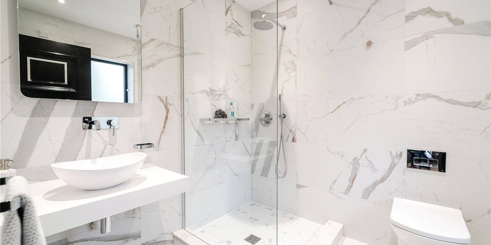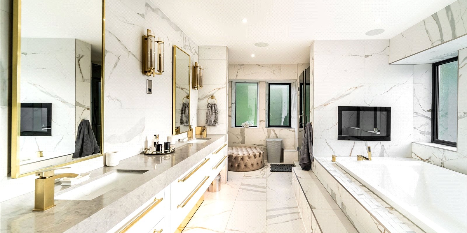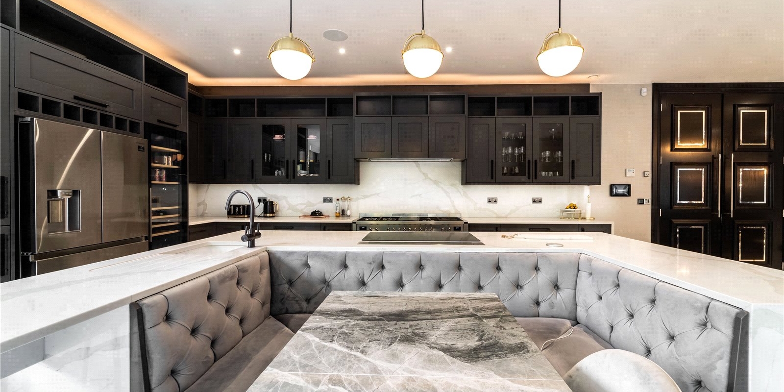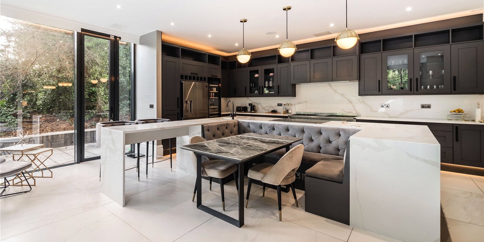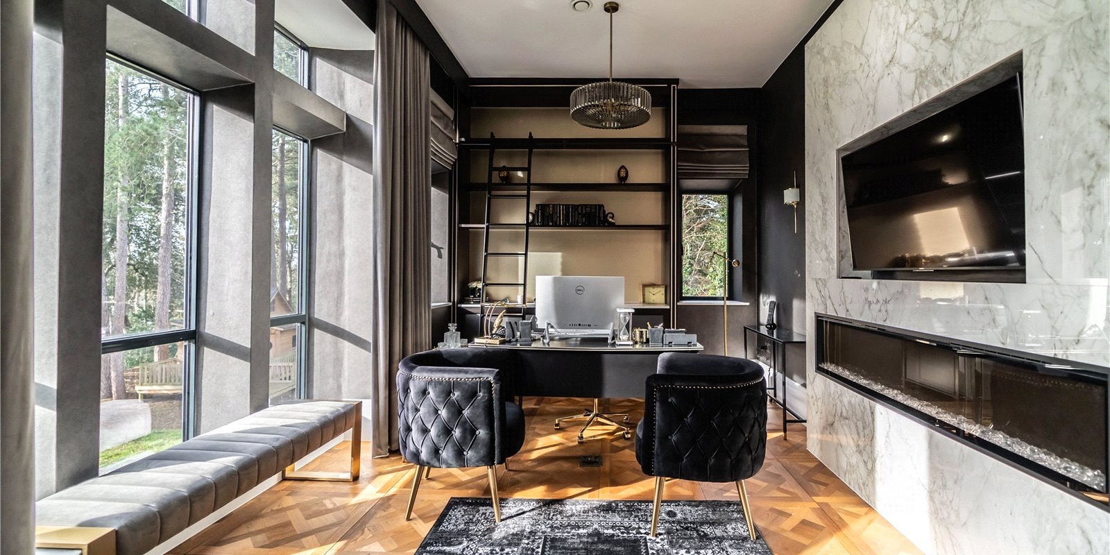 Internally, one is drawn to the bold material palette and inspried entrance. In summary, the ground floor features a grand entrance hallway, formal lounge, study, playroom, utility room, and W.C. The breathtaking and luxurious open-plan family living kitchen diner boasts a wealth of superior fixtures and fittings. Additionally, the ground floor provides access to a stunning leisure suite, including a spacious gym, swimming pool with bar area, sauna, steam room, and shower room.