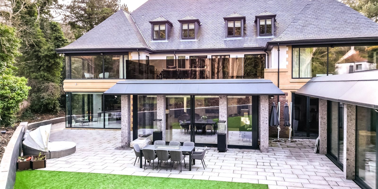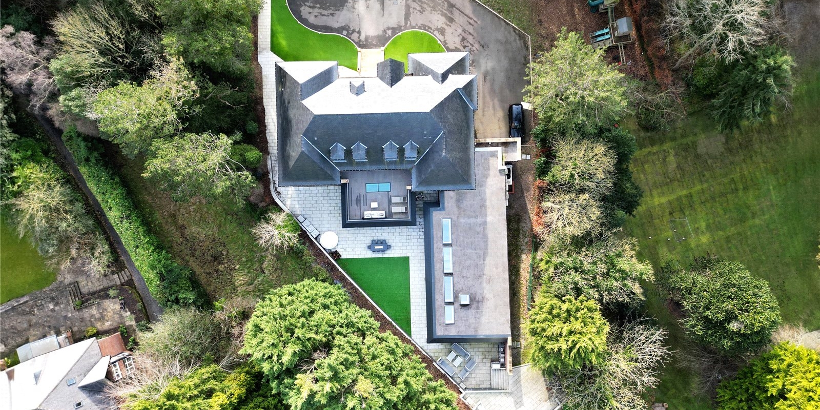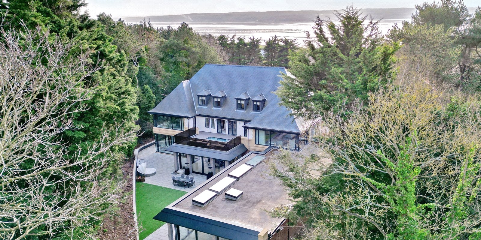 Sumptuous residence of vast proportions and meticulous attention to detail situated on a secluded plot in the heart of Caldy. With its striking architectural profile and innovative approach to detail and craftsmanship, the property spans over 12,000 square feet and comprises five bedrooms, five bathrooms, and a leisure complex. From the exterior, this contemporary home immediately captivates with its distinctive and clever combination of stone, render, and glass.