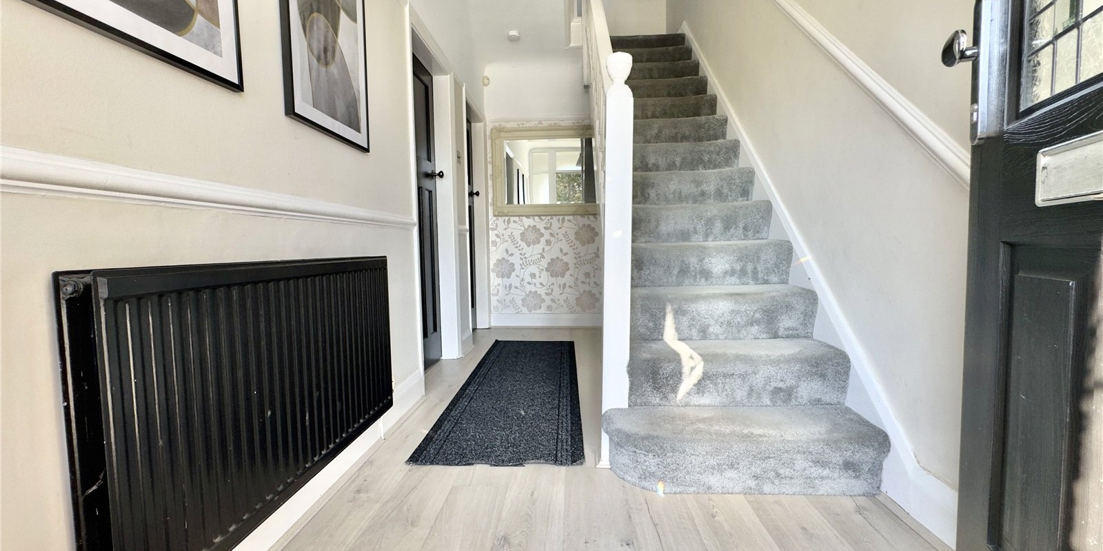 Inside the home immediately feels warm, welcoming and thoughtfully cared for. The entrance hallway leads into a charming front lounge where a large bay window fills the room with natural light, while a wood-effect fire creates a focal point for those cosy evenings.