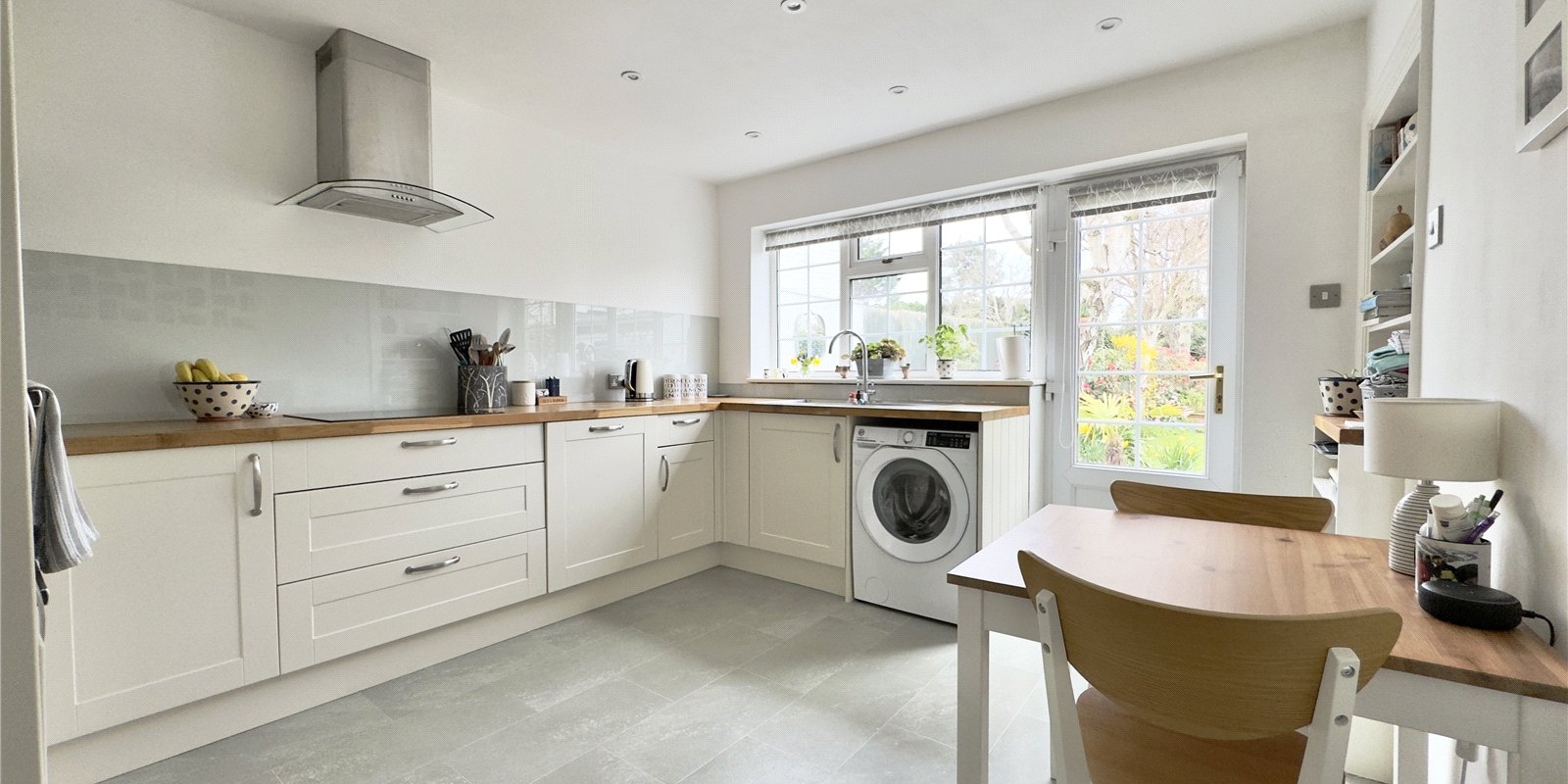 The accommodation begins with a welcoming reception hall that sets the tone for the rest of the home. A series of versatile living spaces branch off from here, including a spacious lounge with an attractive feature fireplace, a formal dining room perfectly suited to entertaining, and an additional reception room that could easily serve as a sitting room, snug, or home office depending on lifestyle needs. The kitchen blends traditional charm with modern practicality, featuring solid oak work surfaces, generous storage and direct access out to the rear garden.