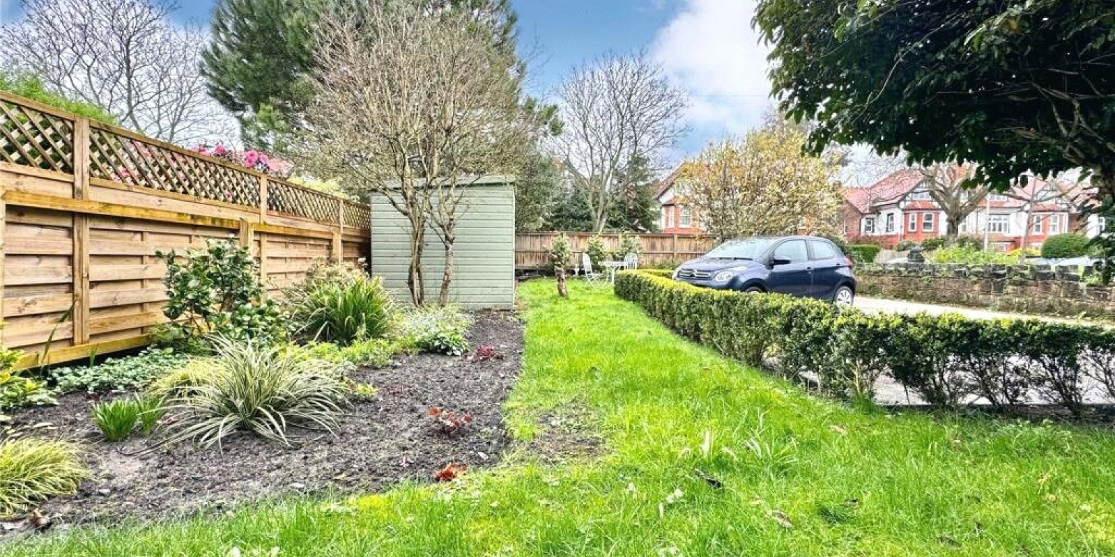 The property benefits from the rare advantage of a private front garden and off-street parking, adding both kerb appeal and everyday convenience.