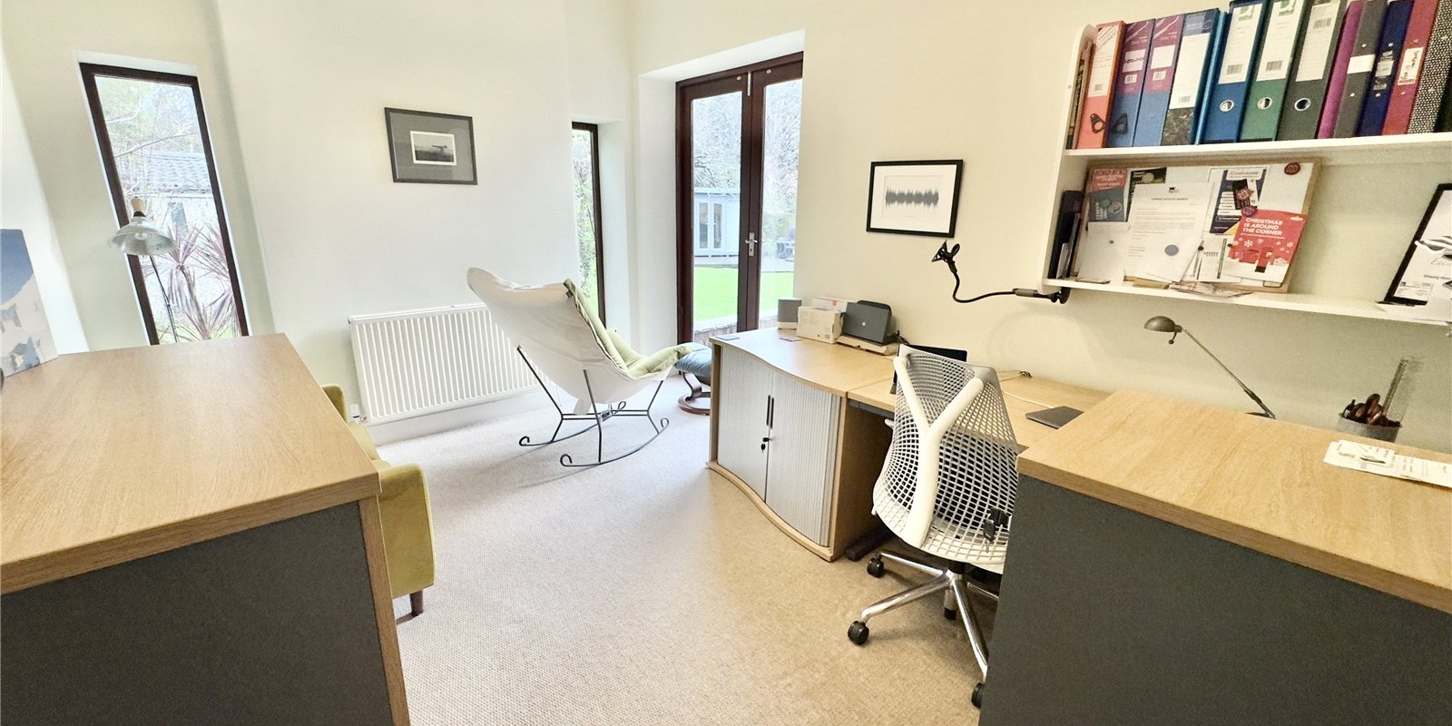 On entering the home, you are welcomed by a well-lit hallway and character staircase. The ground floor offers a generous sized living room with log burner, a beautifully appointed study, flooded with light overlooking the garden due to the full length fitted windows. There is a downstairs WC and then a lovely family kitchen diner with pantry. Again, this area is well lit due to patio doors giving access to the lovely garden.