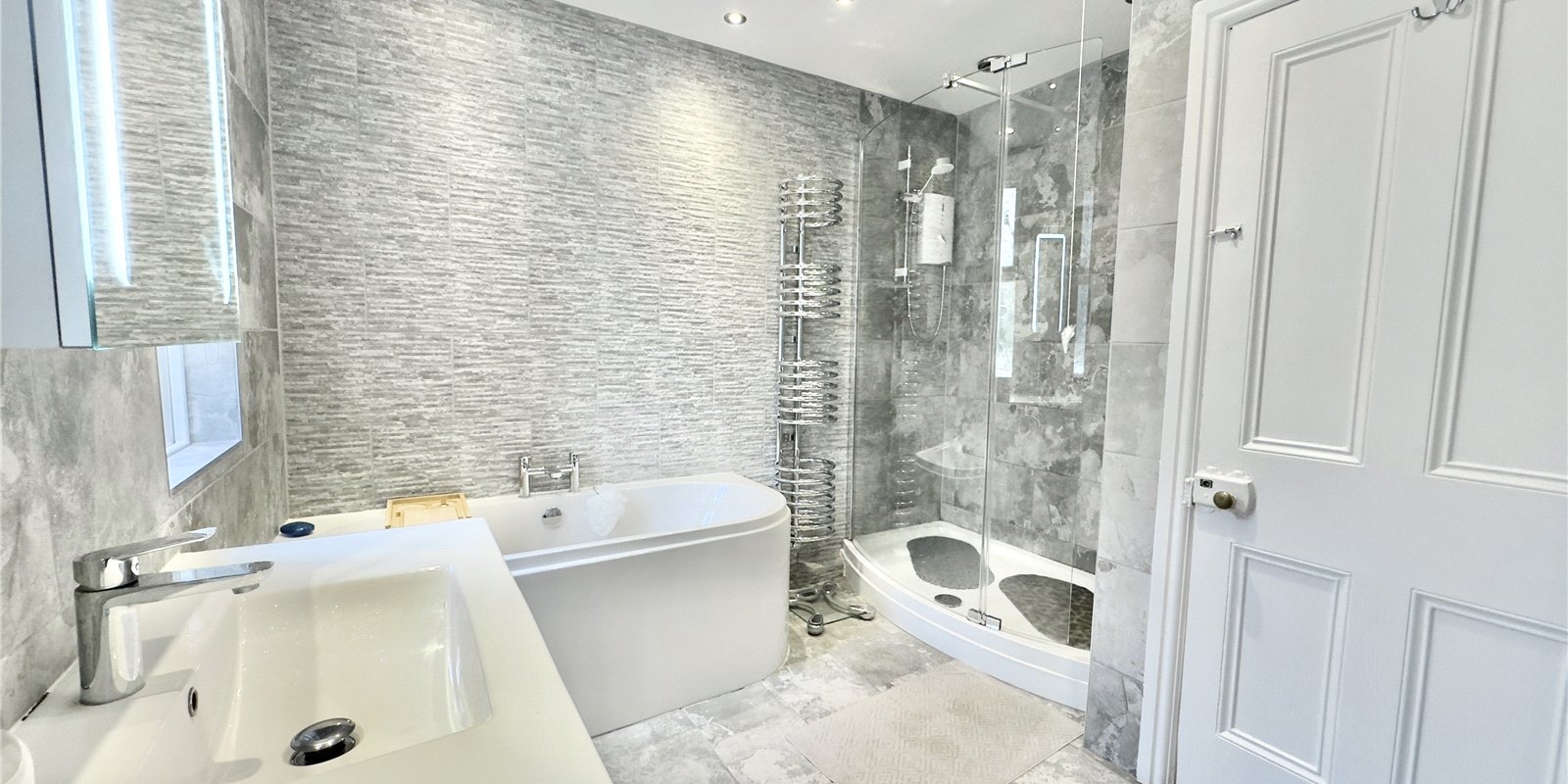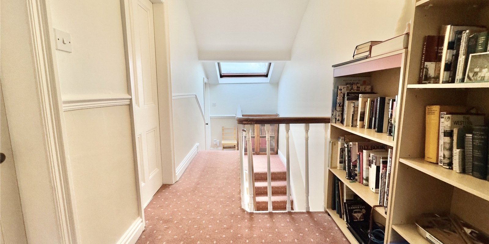 The second-floor benefits from a large Velux window, flooding the staircase with light. Two large bedrooms are complemented by a walk-in shower room for top floor convenience. The large landing space offers plenty of room for bookcases, a reading area or play are for young children.