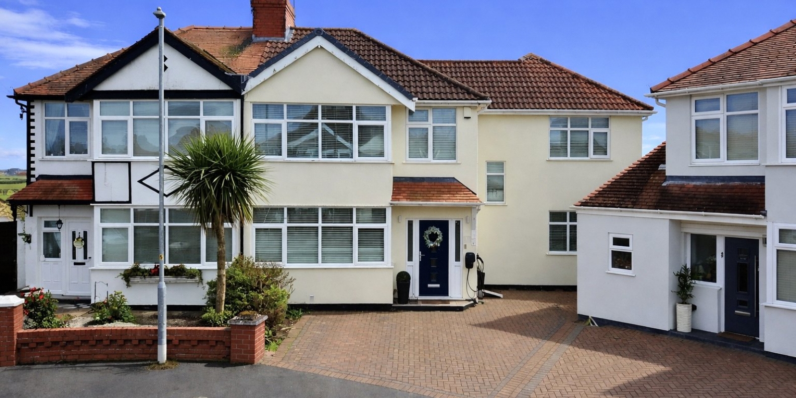 Substantial Five Bedroom Corner Plot Home with Countryside Views & Exceptional Living Space. Occupying a generous corner plot and standing as the largest home on the road, this impressive five-bedroom semi-detached residence extends to approximately 2,000 sq ft, offering outstanding space, flexibility, and a lifestyle perfectly suited to modern family living.