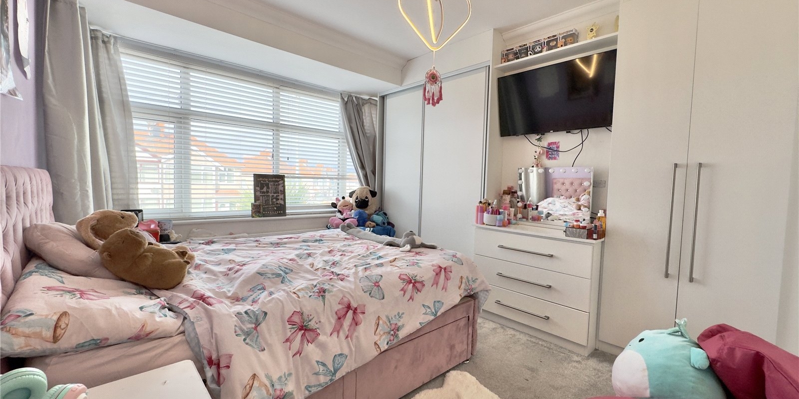 Upstairs, the sense of space continues. There are five bedrooms in total, including four well-proportioned doubles, all benefiting from fitted wardrobes. The Master bedroom is a standout feature, enjoying its own en-suite and access to a private balcony with delightful views over open fields, an ideal spot for a morning coffee or evening unwind.