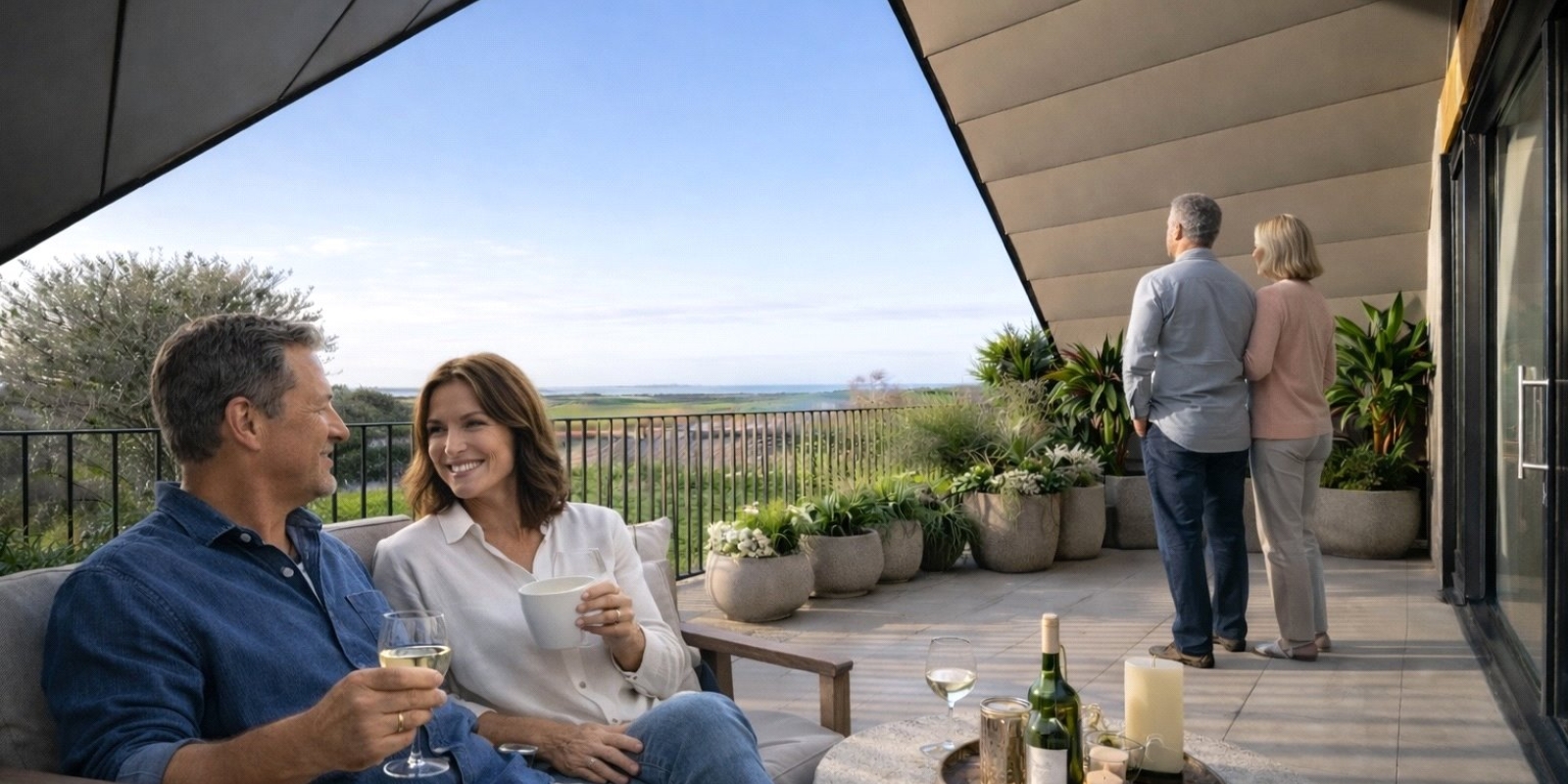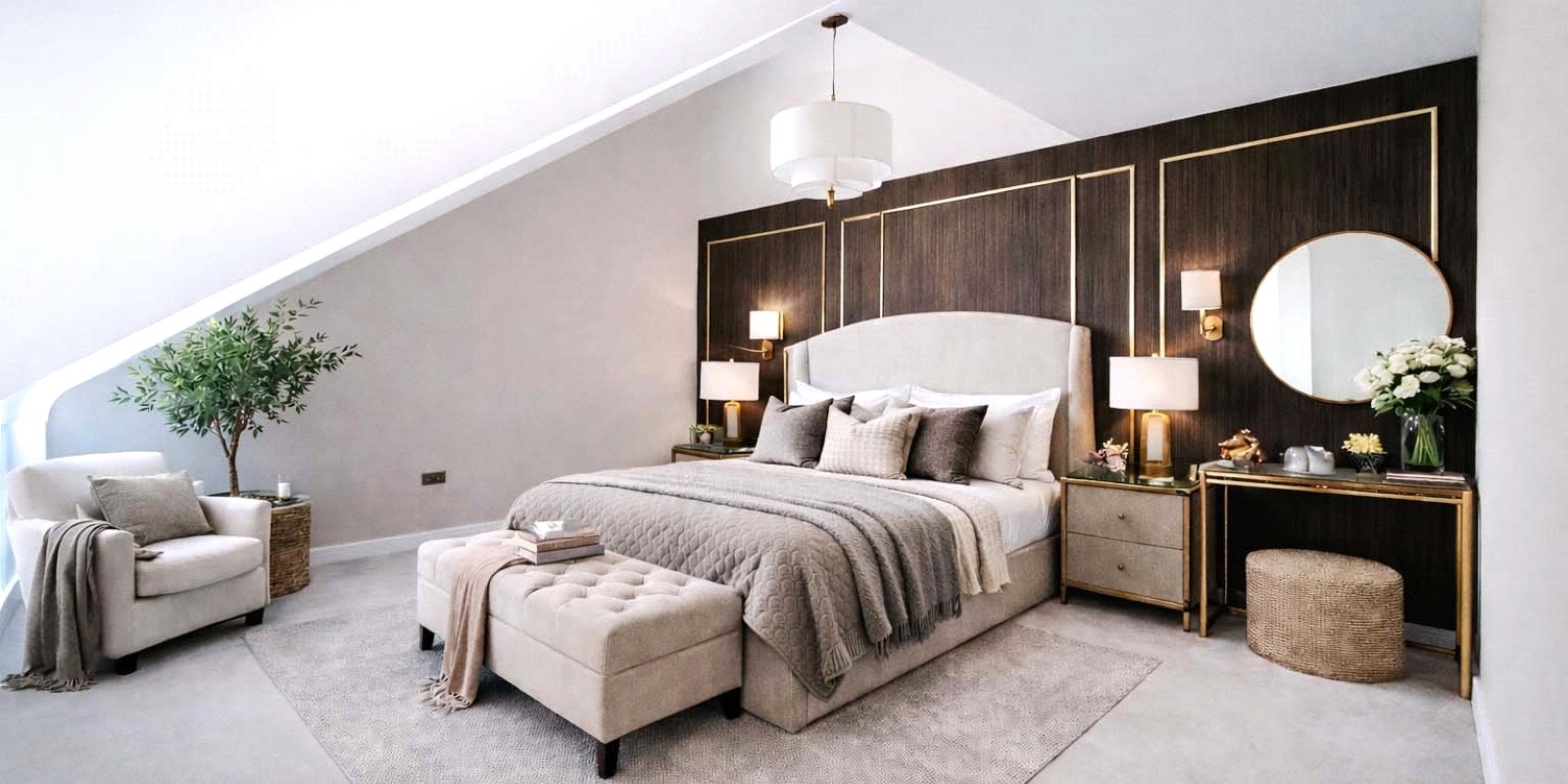 The bedrooms have been designed for rest and restoration, with generous proportions, abundant natural light, and, in select rooms, breathtaking coastal and countryside views. Walk-in wardrobes provide bespoke storage, while en-suites deliver a boutique hotel feel. The penthouse retreat, tucked away from the main living areas, offers a serene space to read, work, or relax in complete privacy, embodying quiet luxury and thoughtful design—a true sanctuary at the top of The Links.