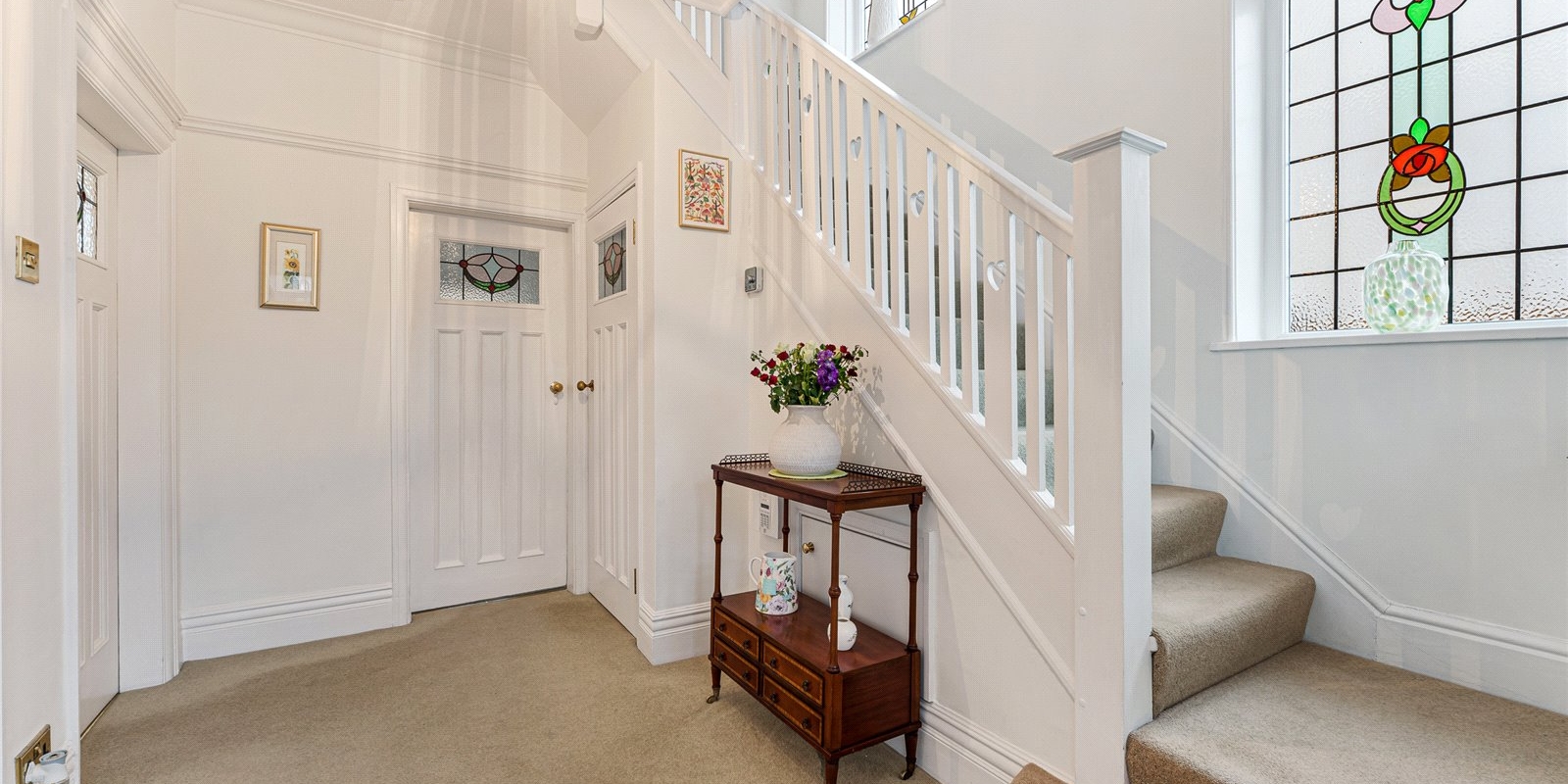 To the front, the spacious bay-fronted reception room—currently used as a formal dining space—features a stunning fireplace, offering an ideal setting for entertaining. A second, equally spacious reception room provides a relaxing lounge area, while to the rear, a sun-catching conservatory opens out to the landscaped garden, creating a tranquil retreat throughout the seasons.