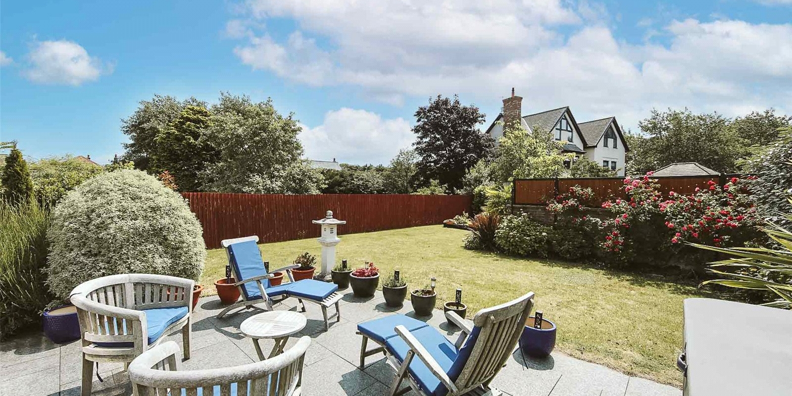 Externally, the home sits on a magnificent plot framed by mature trees and landscaped lawns, offering both privacy and elegance. A stone patio at the rear provides the perfect setting for al fresco dining or relaxing with a glass of wine in tranquil surroundings.
