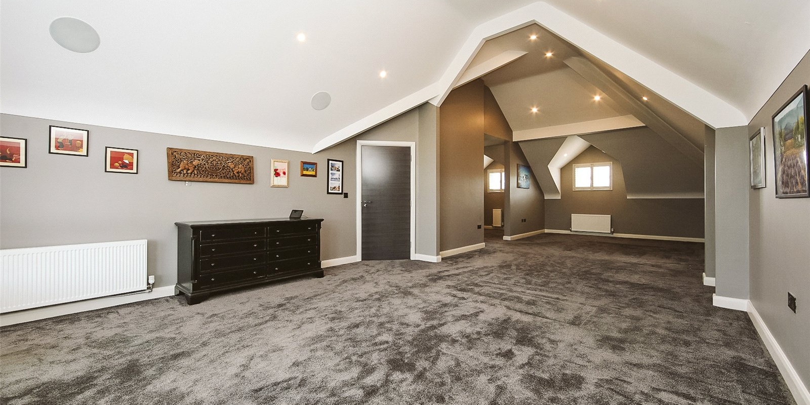 Additional premium features include underfloor heating throughout the ground floor, bespoke window shutters, high-spec floor tiling, luxurious silk carpets, and an integrated audio-visual system with ceiling speakers for both music and television throughout the home.
