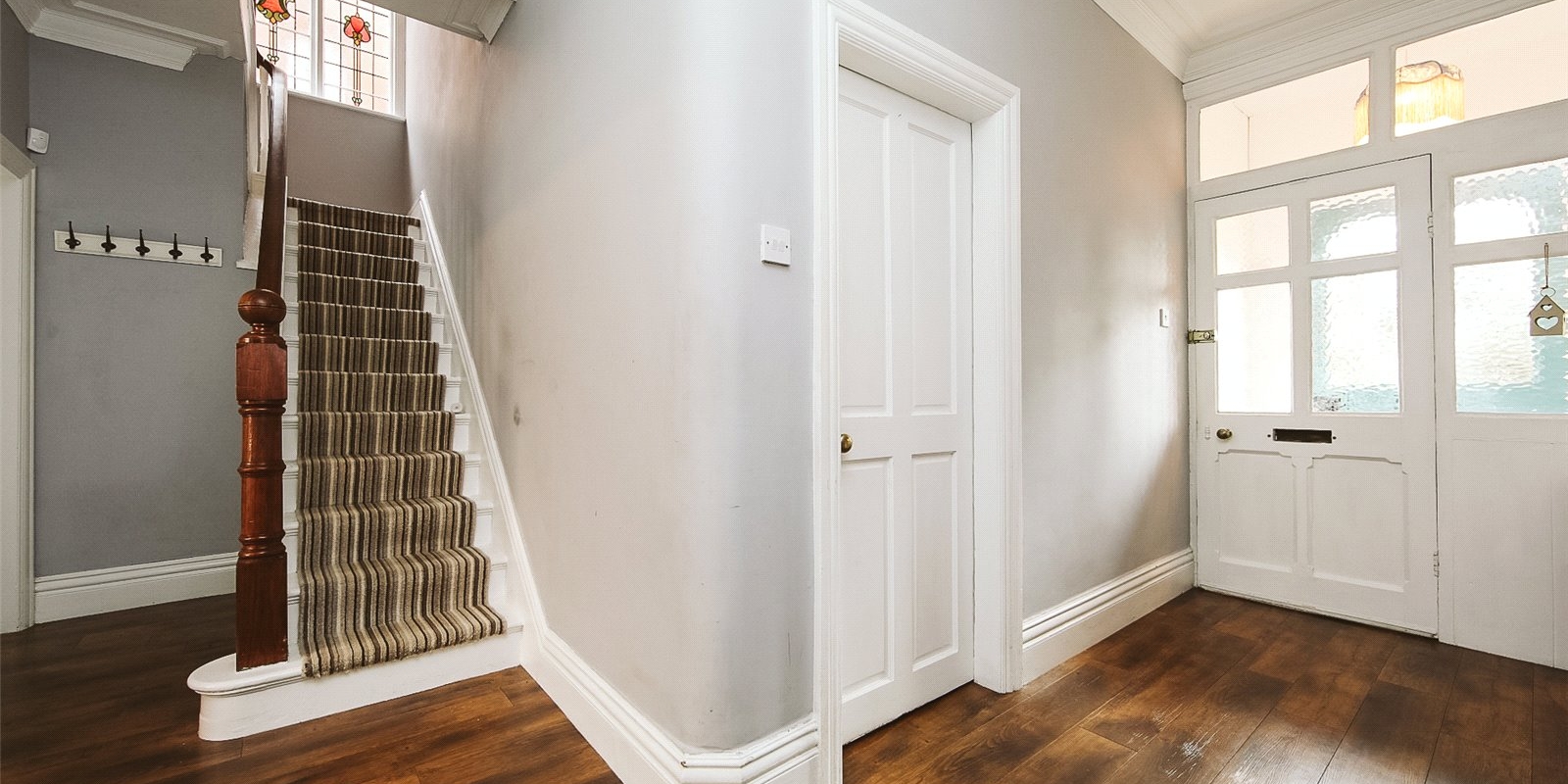The property welcomes you with an attractive red-brick façade, a gravel driveway providing off-road parking, and a welcoming entrance porch leading into a spacious hallway.