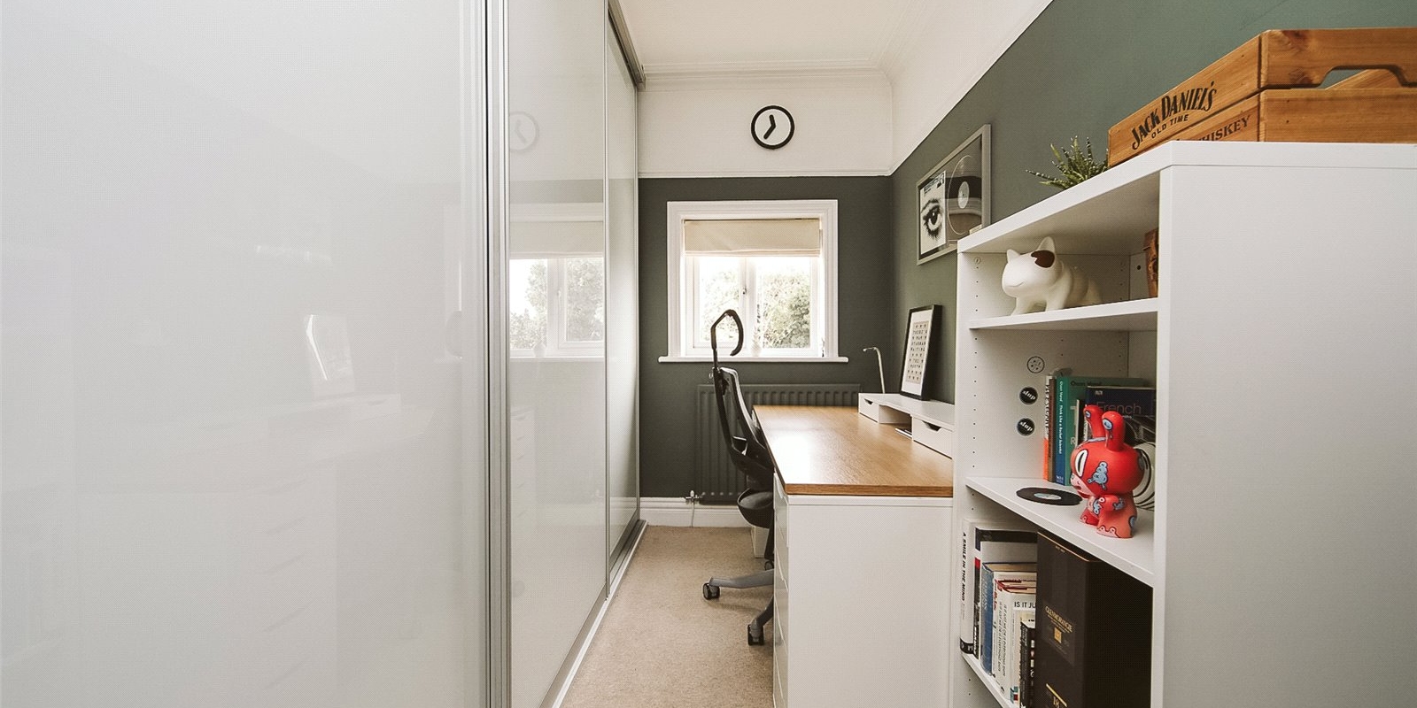 Upstairs, the first floor hosts three well-proportioned bedrooms. The main bedroom enjoys the same beautiful bay window feature as the lounge, while the second double bedroom and versatile third bedroom/office provide flexible accommodation. A modern family bathroom with a bath, complemented by a separate WC, completes the first floor.
