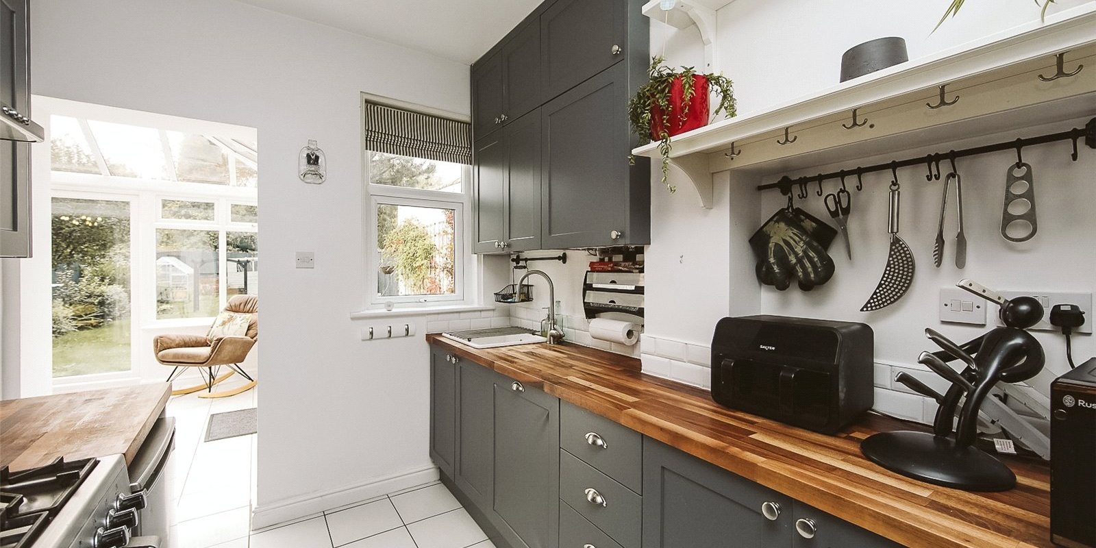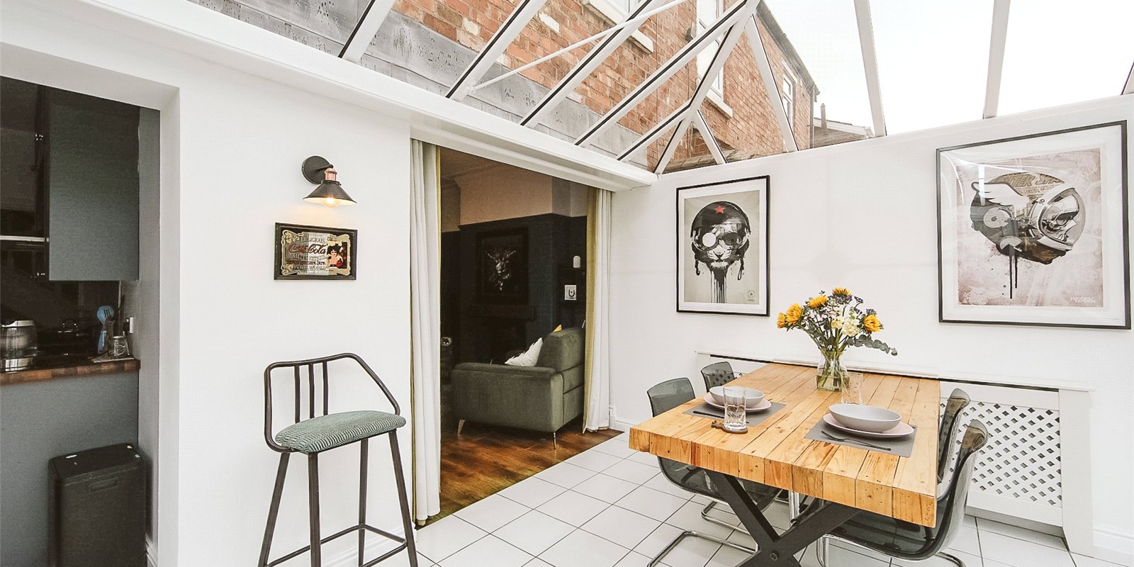 To the front, the bay-fronted lounge is a warm and inviting space, filled with natural light and featuring elegant décor and a contemporary fireplace. To the rear, the sitting room offers further living space, opening through to the bright dining conservatory, which overlooks the garden — a perfect spot for year-round relaxation and dining. The modern kitchen is fitted with ample units and worktop space and includes access to a convenient ground-floor WC.