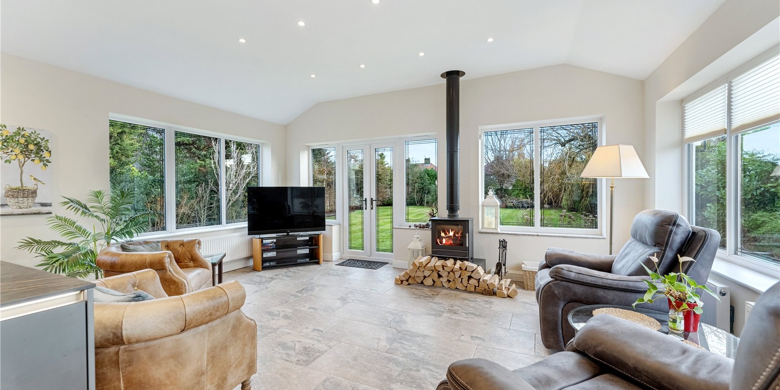 The living space is warm and inviting, centred around a beautiful log burner, creating a cosy yet stylish focal point. The property has been fully rewired throughout and benefits from double glazing, offering peace of mind and comfort. The property further benefits from a separate reception room, offering a wonderful additional living space. This room features a fireplace, creating a cosy and inviting atmosphere, and French doors that open directly onto the garden, allowing natural light to flood in and providing seamless indoor-outdoor living.