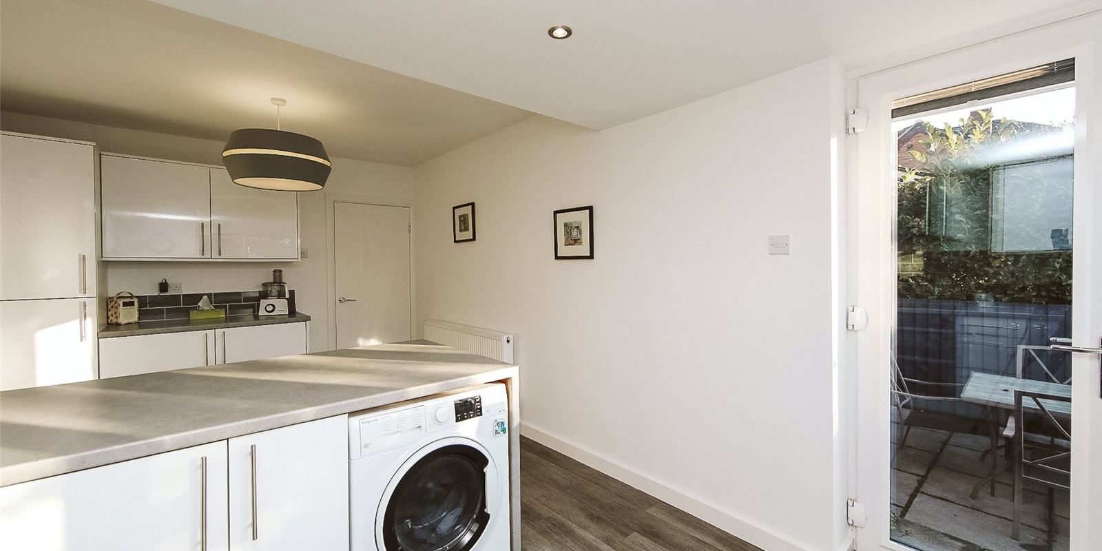 The welcoming entrance hall leads into a spacious open-plan living area, seamlessly connecting the living room, dining room/optional bedroom, and the impressive modern kitchen. Flooded with natural light, the kitchen features generous floor space perfect for cooking, dining, and entertaining.
