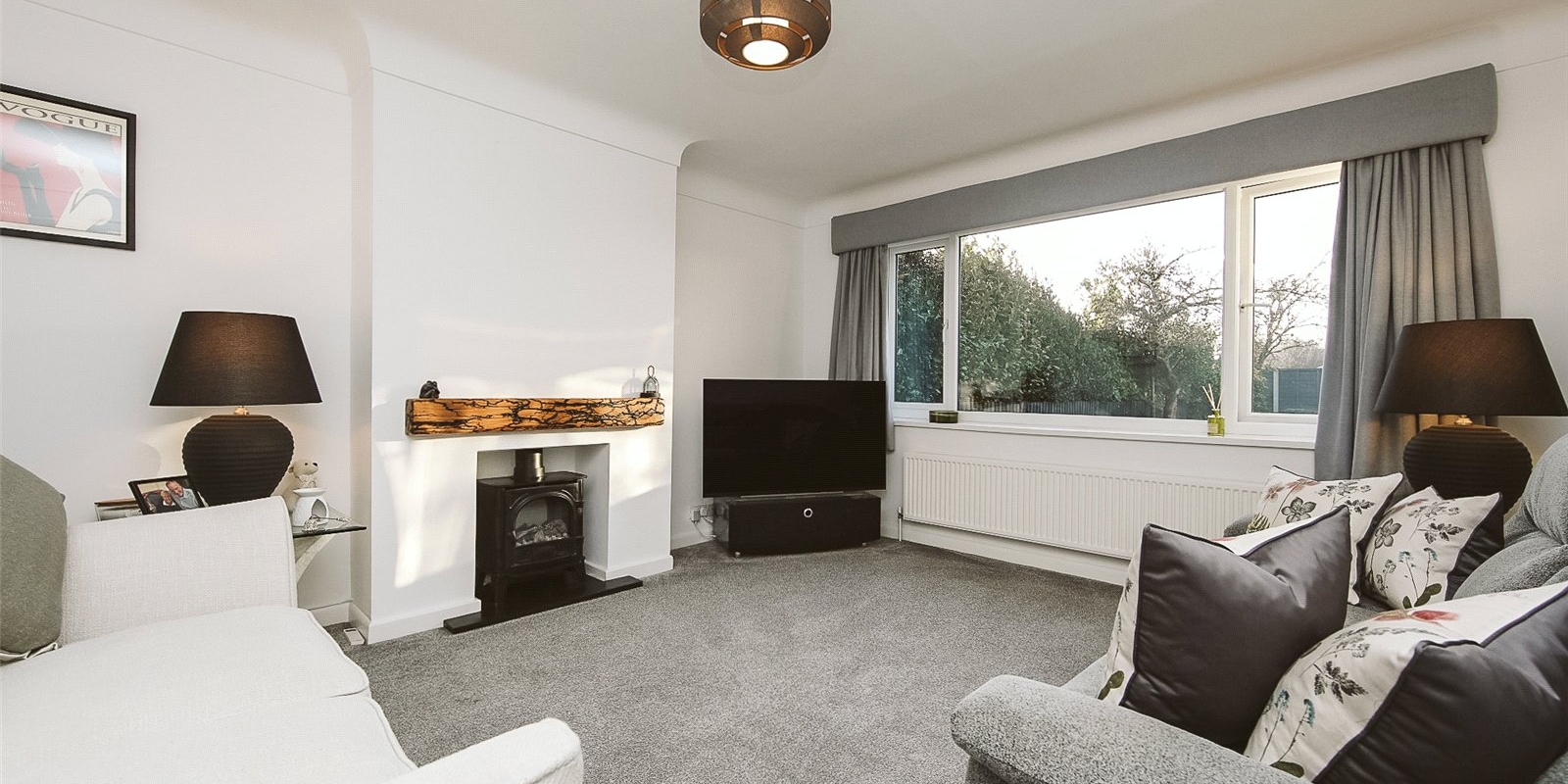 To the front of the property, a large private driveway provides ample off-road parking for two cars.