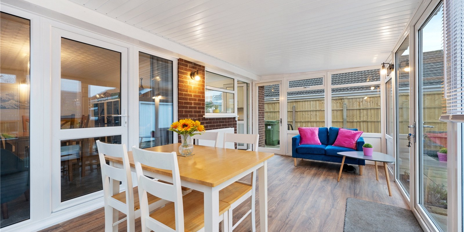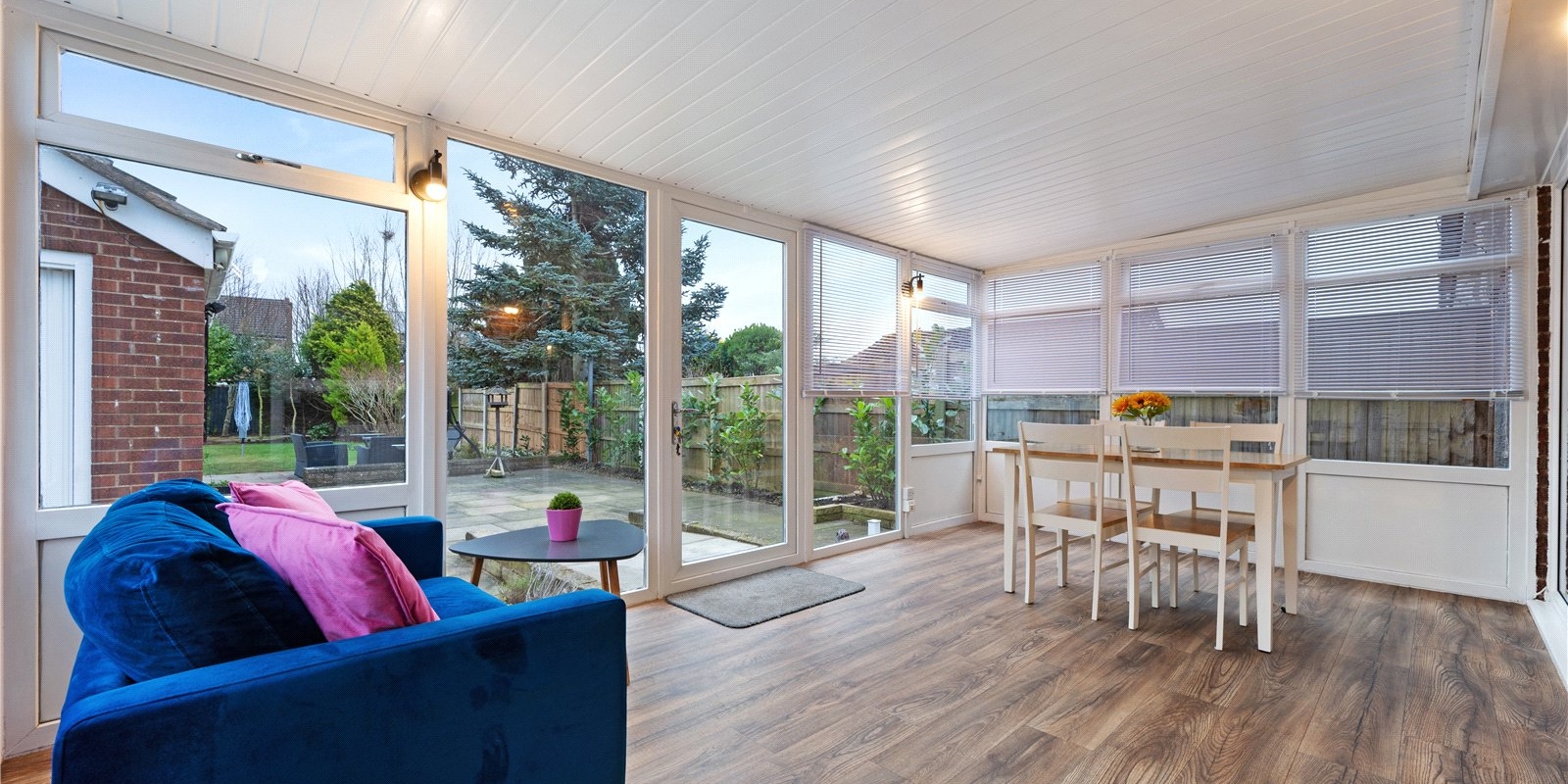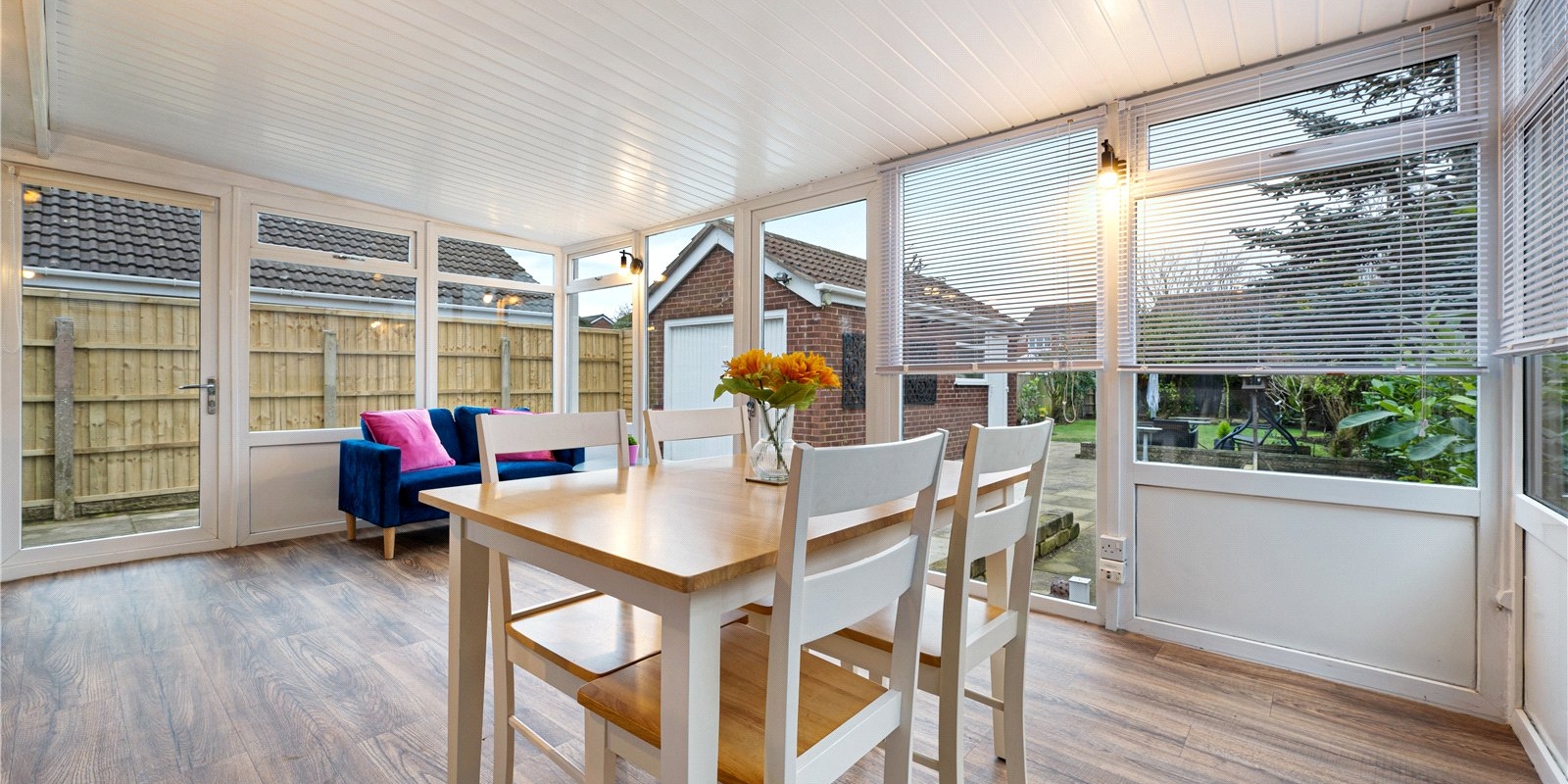 Adjoining the kitchen is a separate dining room, ideal for family meals or hosting dinner parties. This room leads directly into the conservatory, a bright and airy space filled with natural light. The conservatory offers stunning views of the rear garden and is a perfect spot to relax, read a book, or enjoy a morning coffee while surrounded by nature.