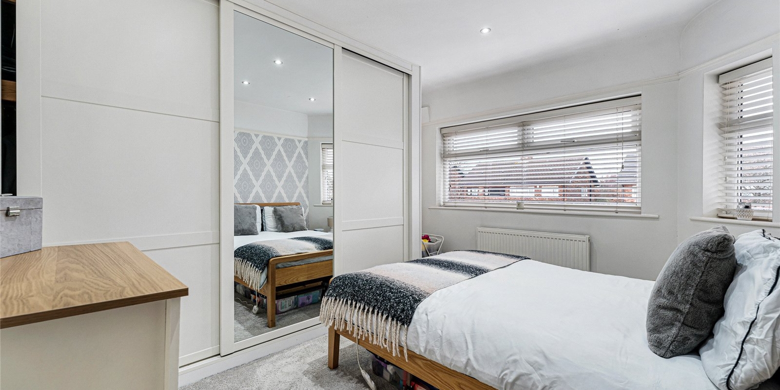 Upstairs, the property offers three well-proportioned bedrooms. The master bedroom is particularly spacious and benefits from a fitted wardrobe, providing valuable storage space without compromising on room size. All three bedrooms are filled with natural light and offer plenty of space for personalization.