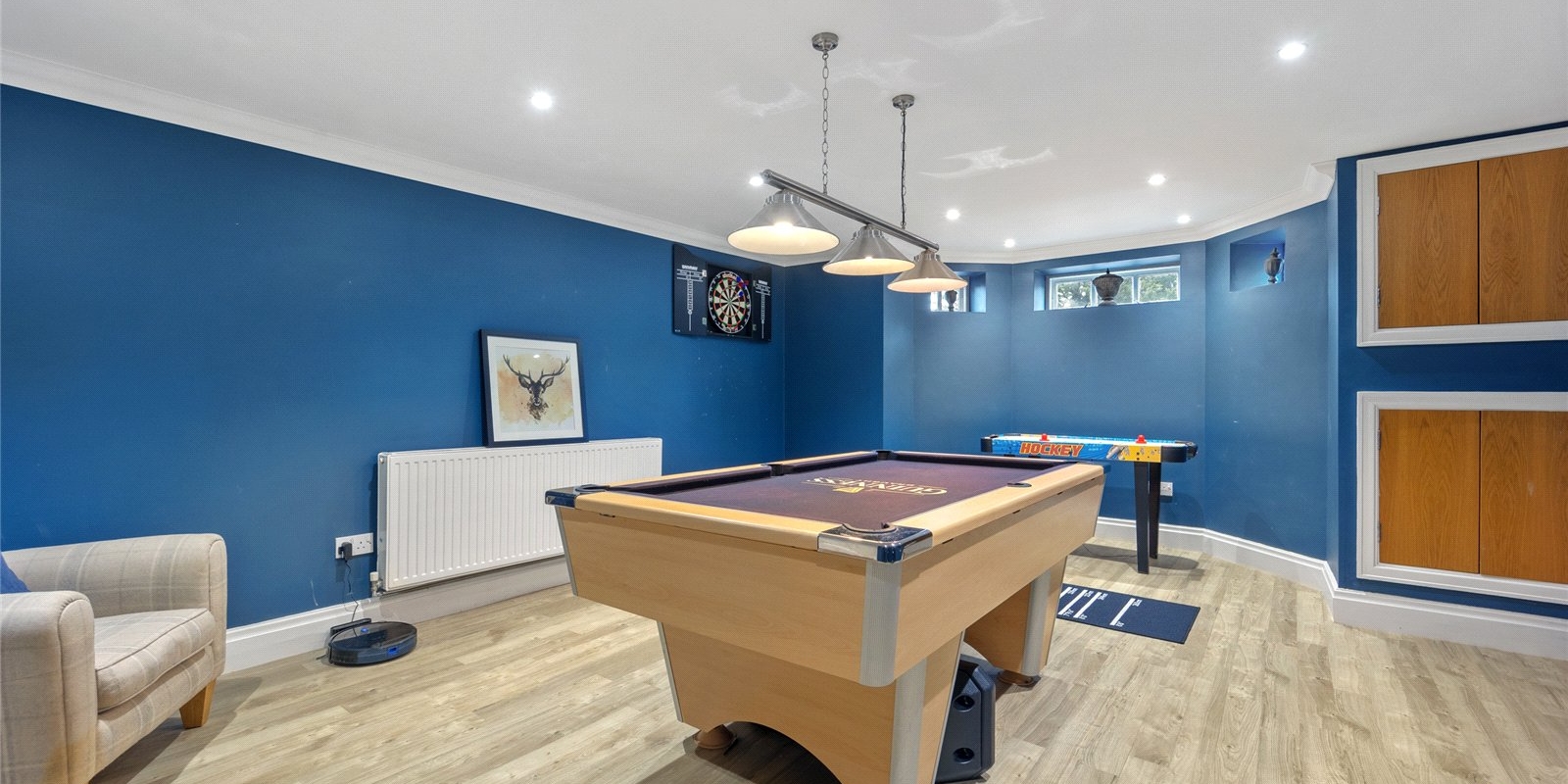 The lower ground floor has been thoughtfully converted into an impressive games and entertainment suite, currently arranged with a pool table, making it the perfect setting for leisure and social gatherings. In addition, a spacious cellar provides extensive storage, adding further practicality to the home.