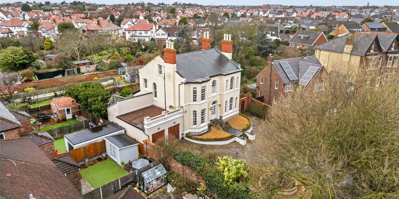 Set behind secure gates with a private driveway perimetered by lamp posts and greenery, this truly outstanding detached residence offers an exceptional opportunity to acquire a distinguished and beautifully appointed family home. Arranged over three impressive floors, the property seamlessly blends timeless character with refined contemporary living, creating a home of remarkable warmth, elegance, and versatility.