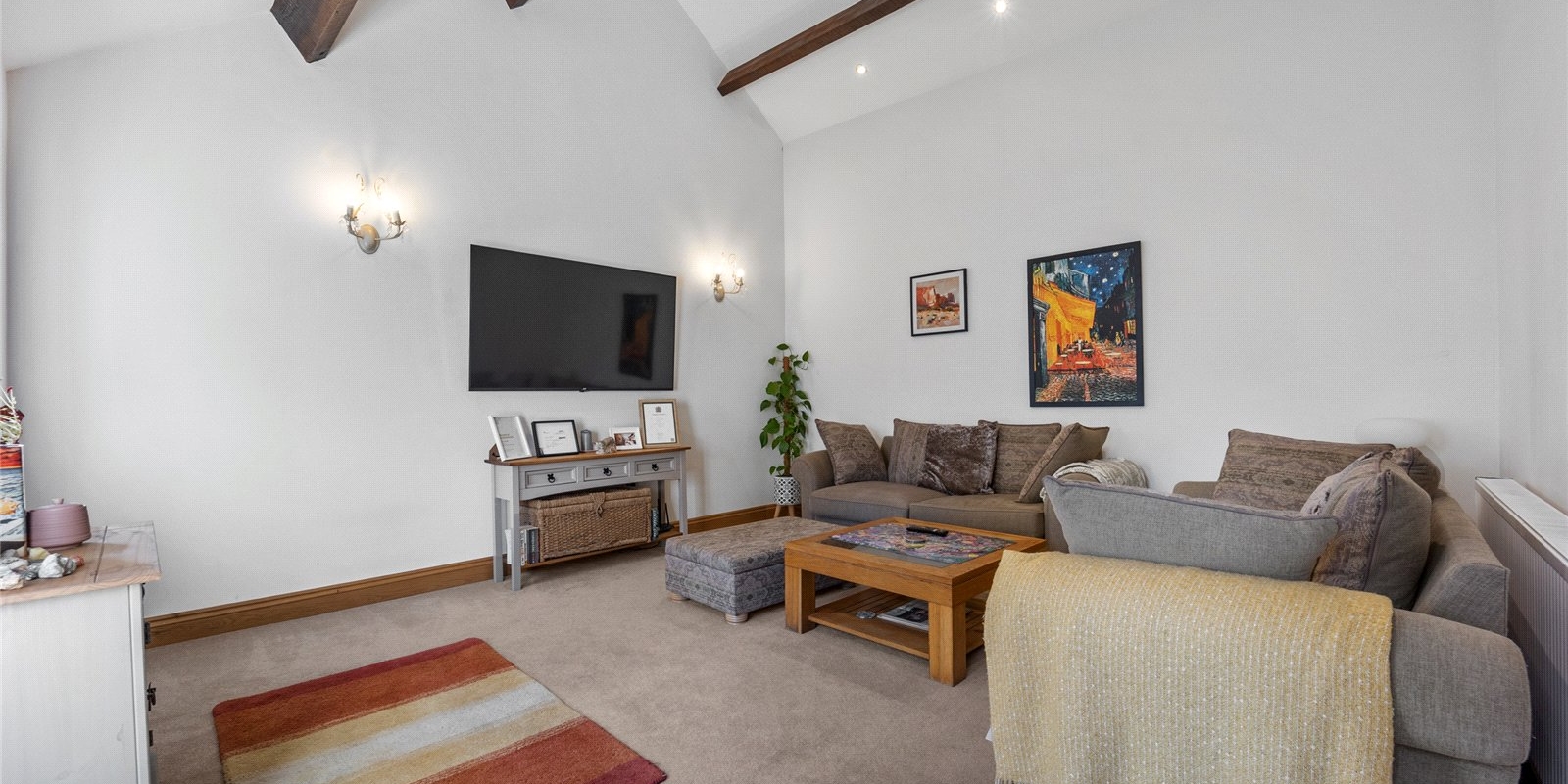 From the moment you step inside, the property exudes charm and sophistication. Original stained glass features, decorative wall panelling, and large light-filled windows create an atmosphere of understated luxury, while the interiors have been thoughtfully curated with tasteful décor and high-quality finishes throughout.