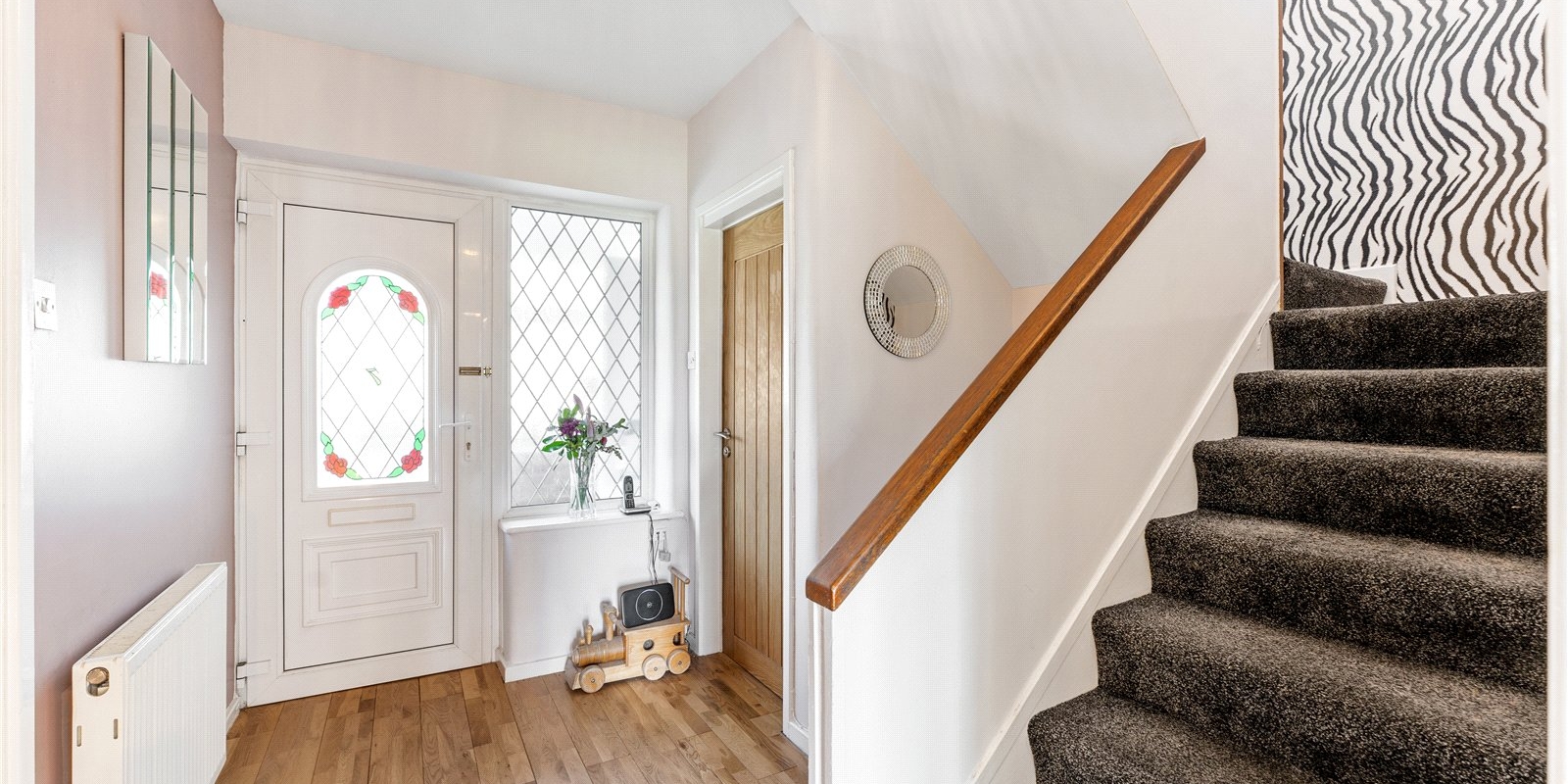 From the moment you enter, the sense of space is immediately apparent. The welcoming entrance hallway leads to a beautifully presented front reception room, complete with a feature fireplace, creating a warm and inviting space ideal for relaxing evenings.