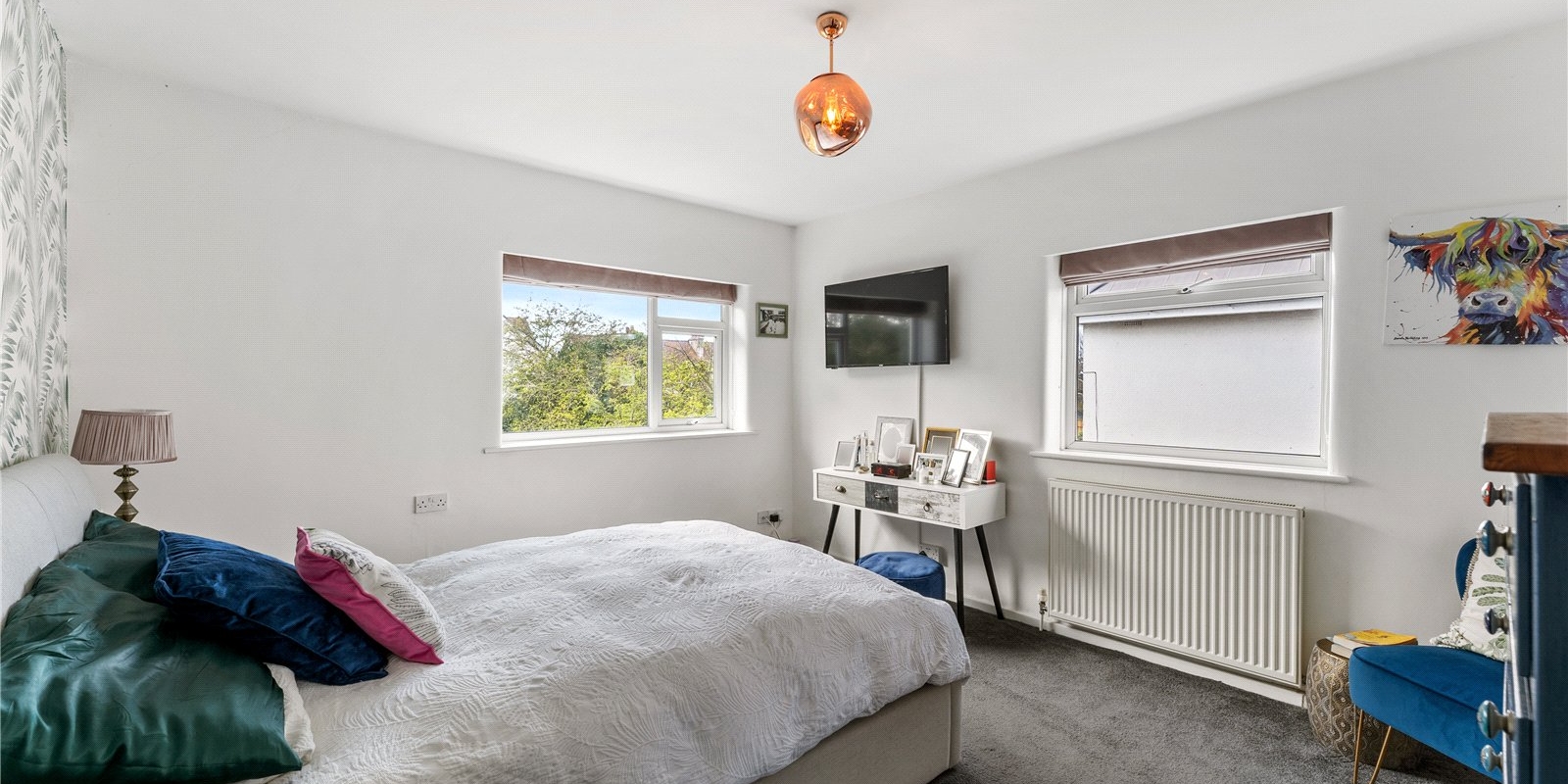Upstairs, the sense of space continues with a generous landing leading to three well-proportioned bedrooms. The impressive principal bedroom serves as a true retreat, complete with a stylish en-suite bathroom featuring a contemporary walk-in shower. The remaining bedrooms are all spacious and versatile, easily accommodating family living, guest use, or additional workspace if required.
