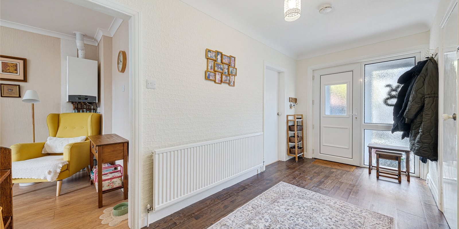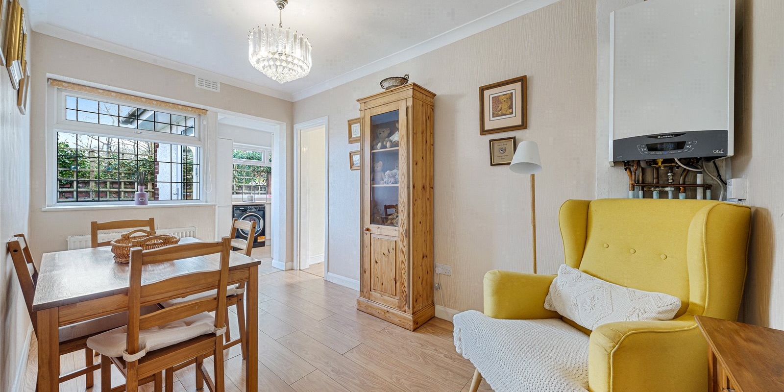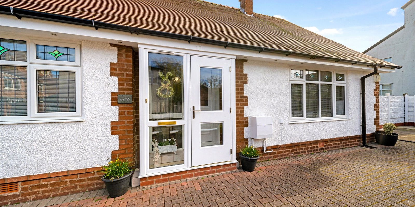 The kitchen is well-proportioned and conveniently located, with access to the rear garden. There are two generously sized bedrooms, including a large primary bedroom, along with a well-appointed bathroom.