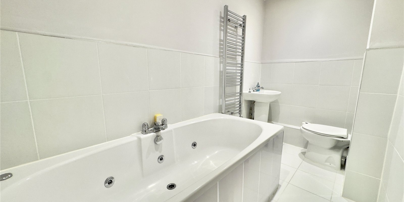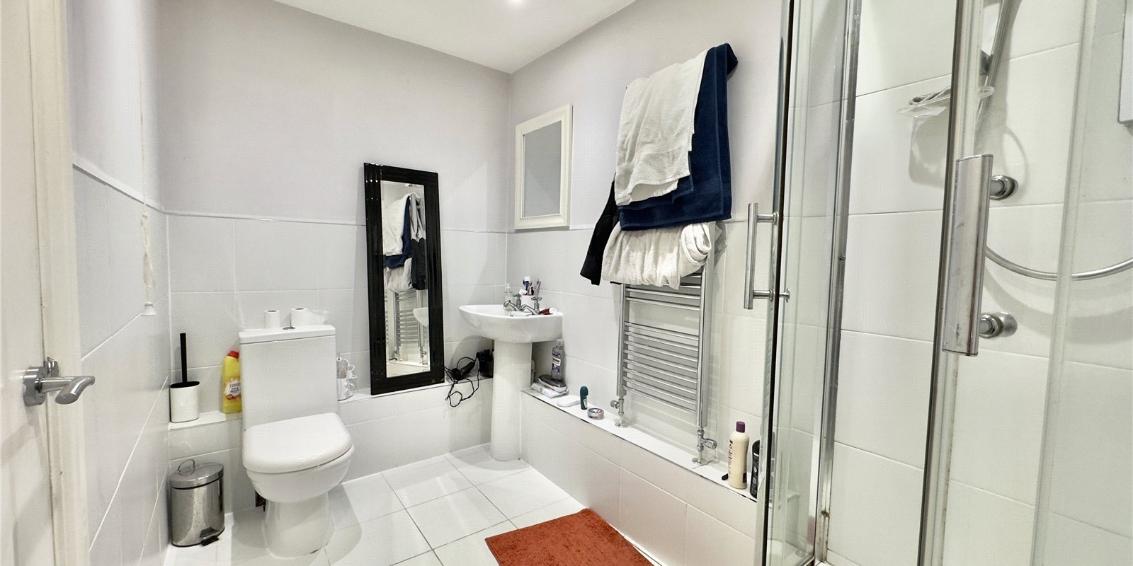 Both bedrooms are well sized, with the principal bedroom enjoying the privacy and convenience of its own ensuite bathroom. The second bedroom is also a comfortable double, ideal for guests, children, or a dedicated home office. A modern main bathroom serves the rest of the apartment, finished with contemporary fittings.