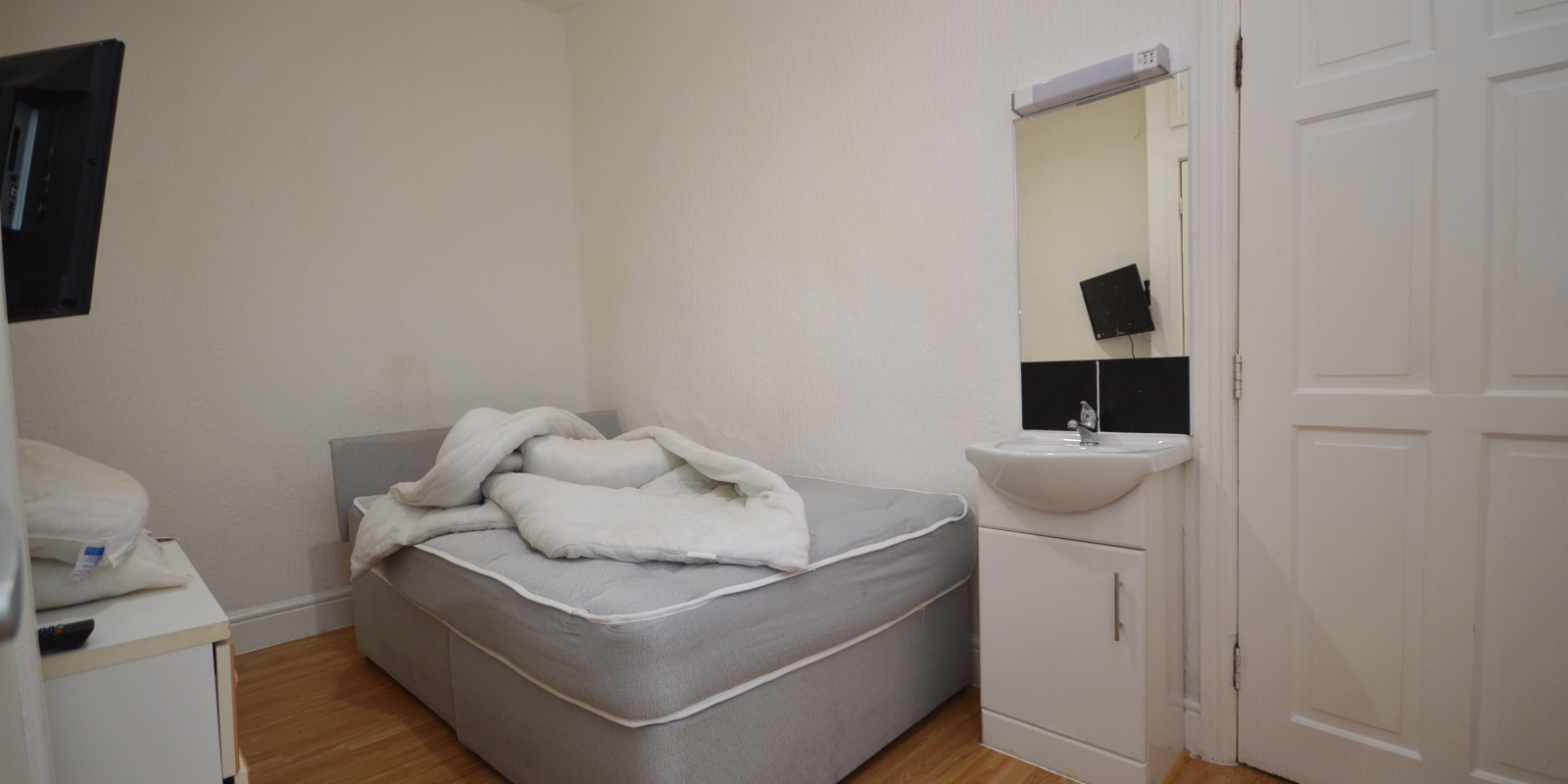 Living Room/Bedroom Four - (4.14m x 3.23m) - Double glazed bay window to the front elevation, laminate flooring, wash hand basin and radiator.