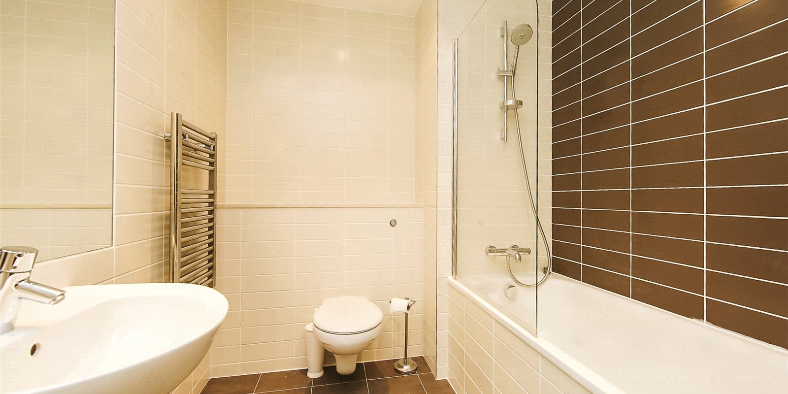 Situated on the 5th floor with stair and lift access, the accommodation briefly comprises; entrance hall with washer dryer and storage, large living room, fully fitted kitchen with integrated appliances, two double bedrooms and a modern three-piece family bathroom. The master bedroom benefits from its own en-suite shower room.