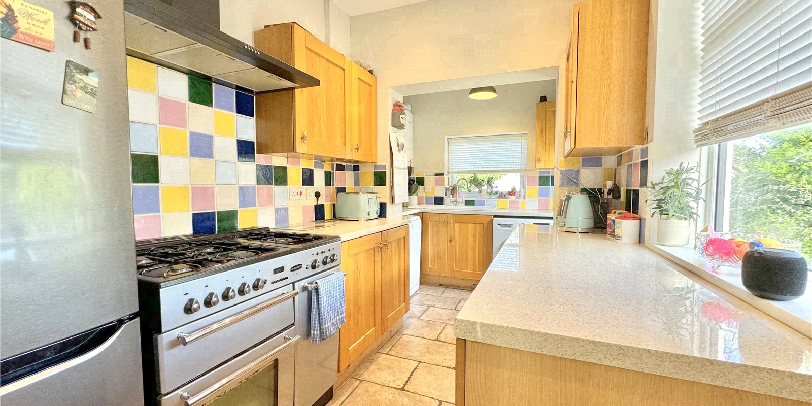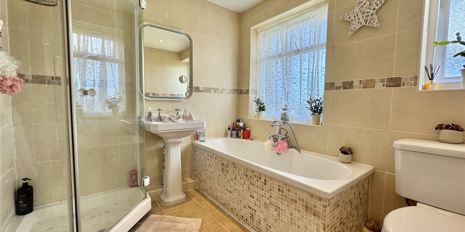 The property is approached via a driveway for off road parking. Upon entering, you are greeted by a welcoming entrance hall which provided access to a generous front facing living room with bay windows complete with fireplace, the dining room is rear facing and has a feature fireplace with doors leading out onto the beautiful garden. There is a fully fitted kitchen, with plenty of cupboard space, and built in appliances..