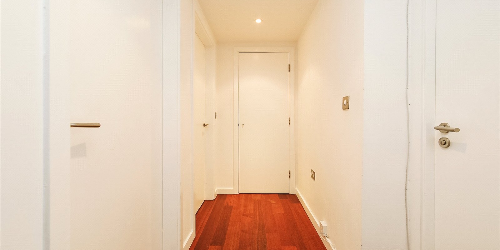 Both bedrooms are generously sized, with the master benefiting from built-in storage and en-suite. The sleek bathroom is finished to a high standard, and the property includes secure entry, lift access, and 24-hour concierge service.