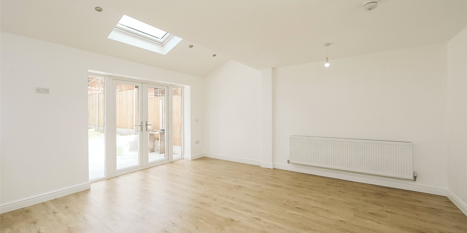 Located in a sought-after residential area, the property features a private driveway and a welcoming entrance into a bright and airy interior. The heart of the home is the open-plan kitchen, dining, and living area, complete with Velux windows for added natural light.