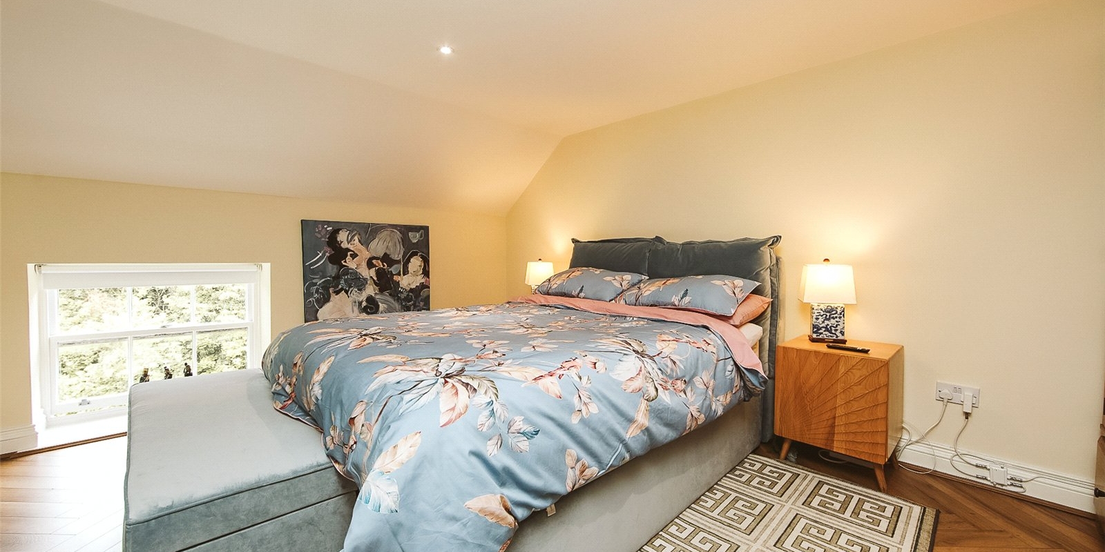 A standout feature of this property is the main bathroom—stylish and serene, it features a freestanding roll-top bath, tasteful décor, and high-quality finishes that elevate the space into a luxurious sanctuary.